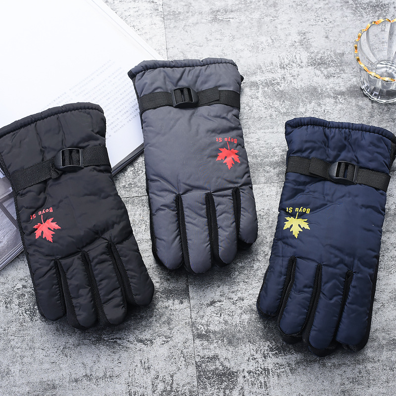 冬の男性保温防風騎乗全指手袋成人ベルベット増厚滑り止めカエデレジャー手袋卸売り