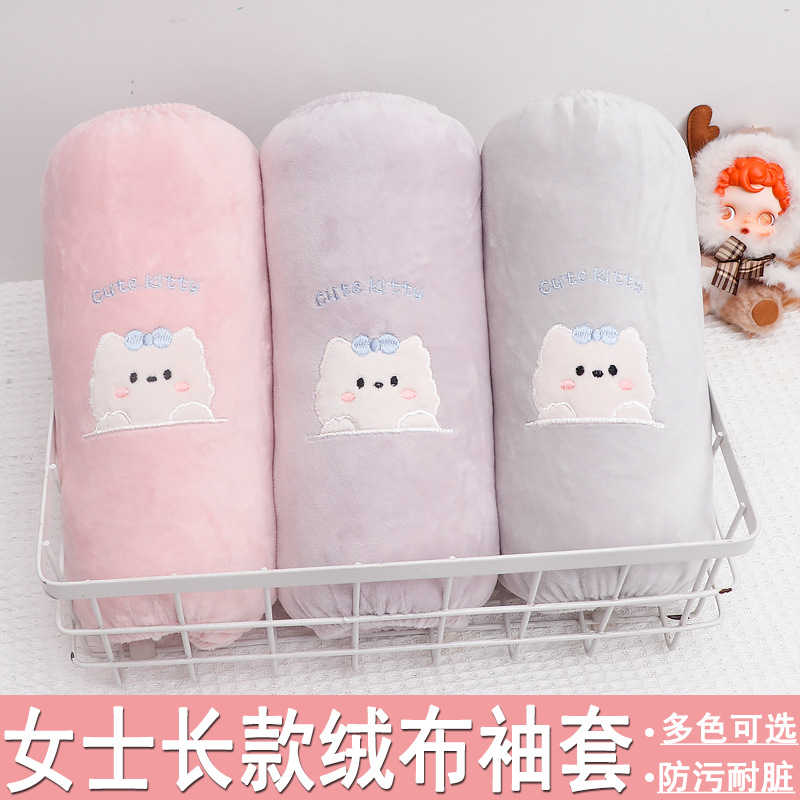 袖套女秋冬长款卡通绣花小猫成人学生套袖工作防脏护袖羽绒服袖头