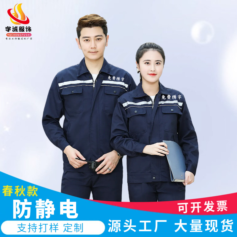 春秋長袖作業服セット男性静電気防止労働保険服耐摩耗性厚い電子工場工場の工装カスタマイズ