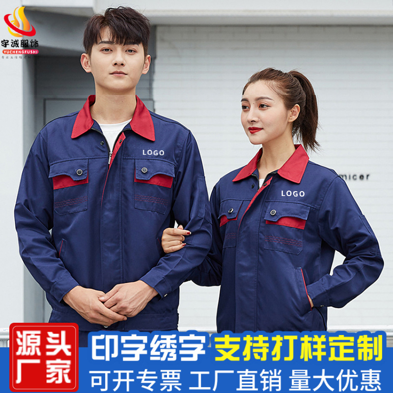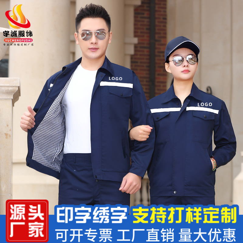 長袖作業服セット男耐磨耗春秋工場服上着内装木工労働保険服自動車修理服工装オーダー