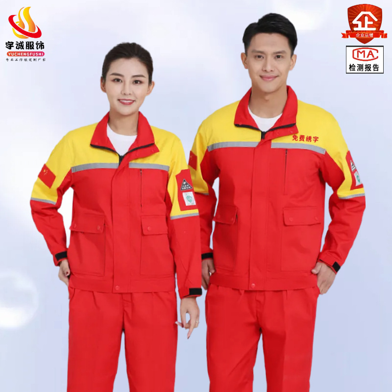 ガソリンスタンド静電気防止作業服カスタムスーツ男女春秋モデル耐摩耗性石油ガスステーション石化労働保険服