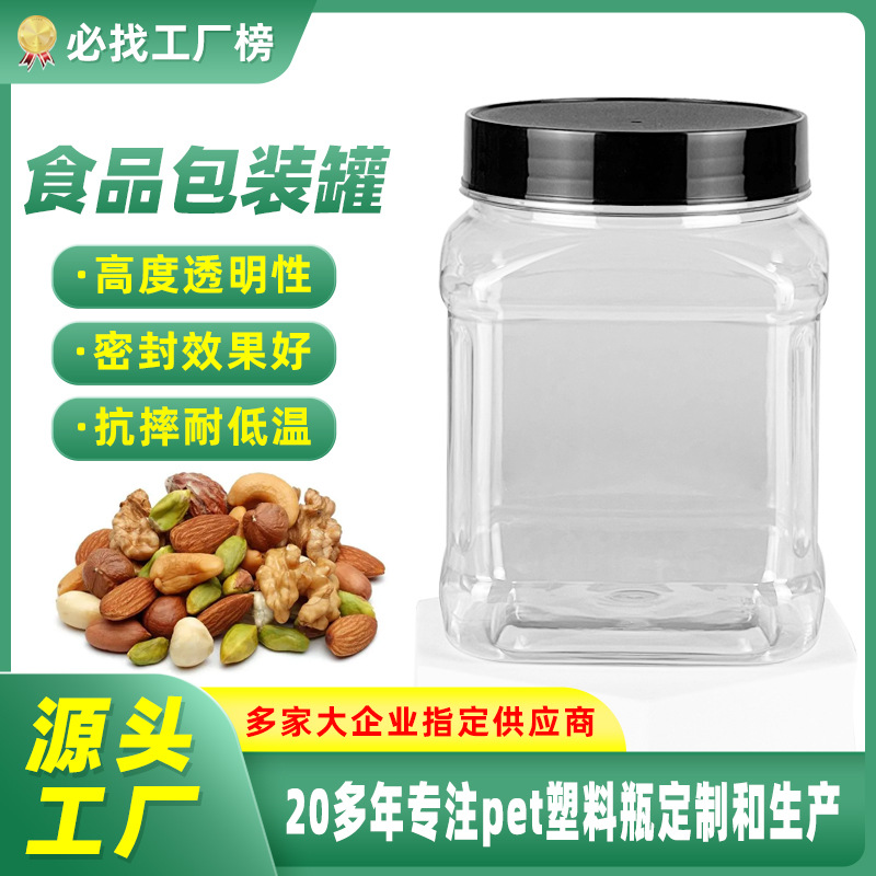 900ml広口瓶角型透明プラスチックpetボトルシール蜂蜜ナッツボトルキャンディー食品貯蔵物包装缶