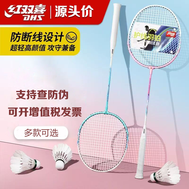 【赠3球】防断线红双喜羽毛球拍铝合金耐打高弹成人儿童比赛训练