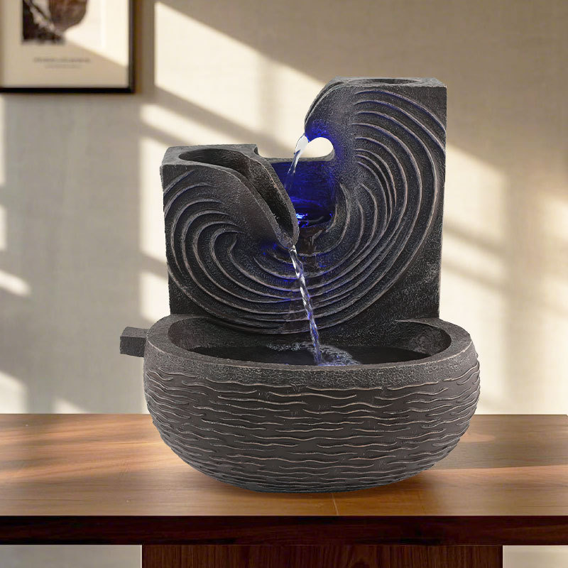 クロスボーダー流水タンク卓上装飾小噴水流水置物循環水帯灯事務室デスクトップ風水置物