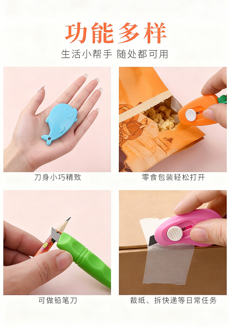 美工刀卡通儿童小号安全美工刀可爱手工小刀裁纸修边美工文具