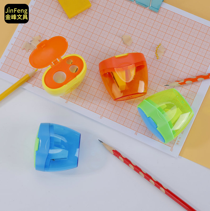 跨境三孔塑料卷笔刀带盖削笔器彩色手动转笔刀简单削笔铅笔刀