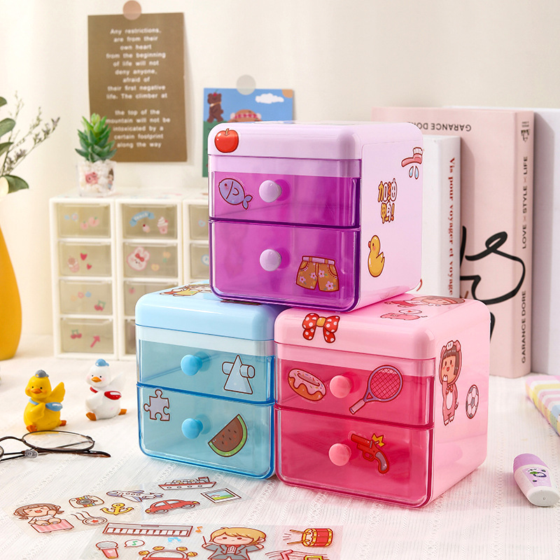 网红ins风手账胶带彩色抽屉式收纳盒 女生寝室小物件文具整理盒