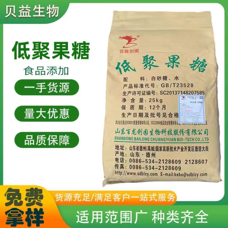 现货批发百龙创园食品级25kg袋装FOS95含量益生元粉末 低聚果糖