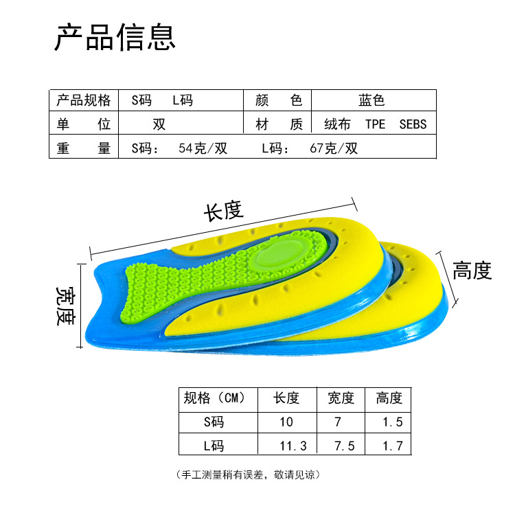 外国貿易ヒールスポーツインソール、滑り止め、衝撃吸収、ハーフクッション、減圧パッド、長時間立っても疲れにくい、男性と女性のヒールパッド