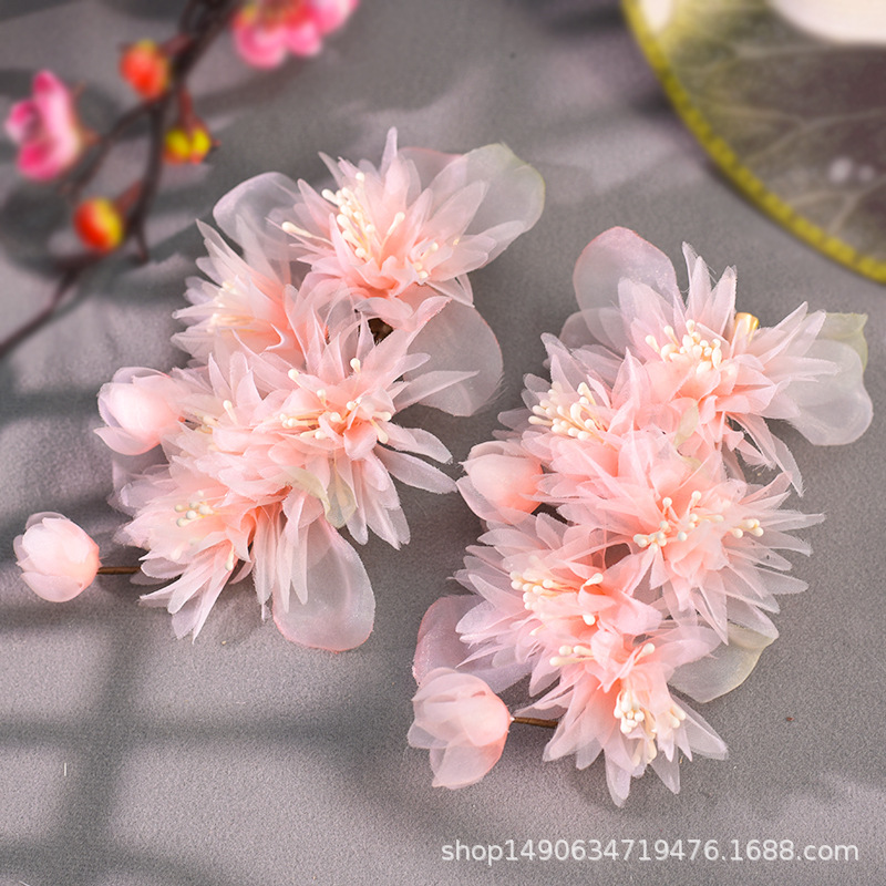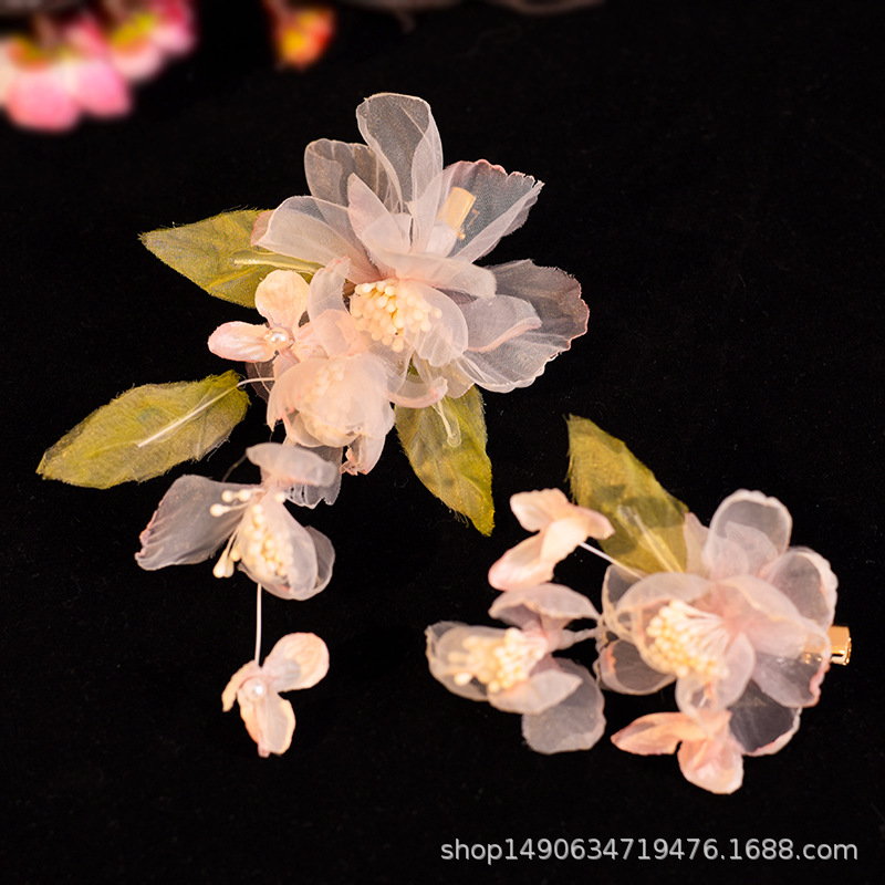 2025年新作オリジナル漢服頭飾り絹糸女仙気シミュレーション花パーマヘアクリップ古風チャイナドレス子供