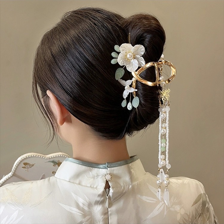 後頭部挟み古風髪飾り古典蘭盤髪クリップチャイナドレス古着流蘇サメクリップ漢服頭飾り