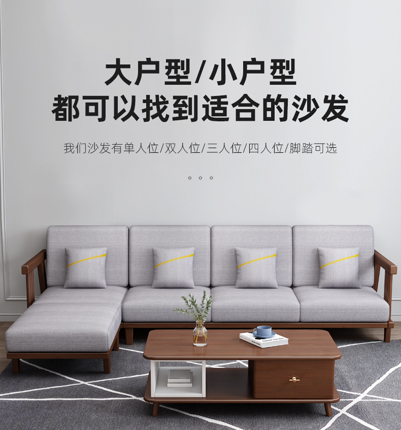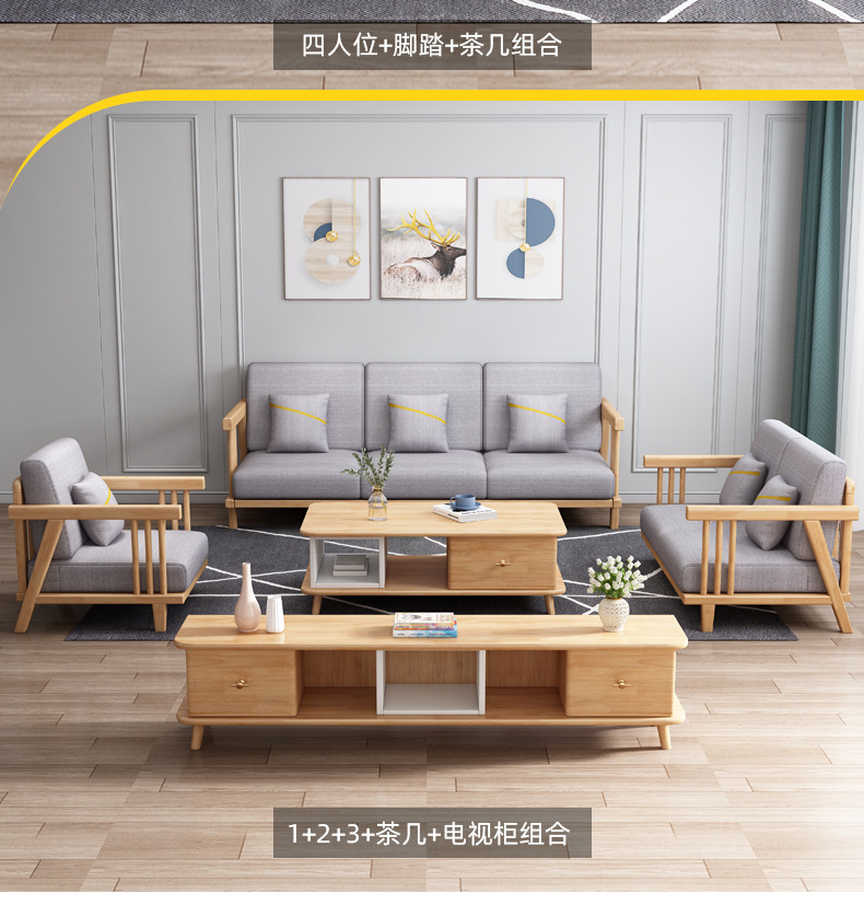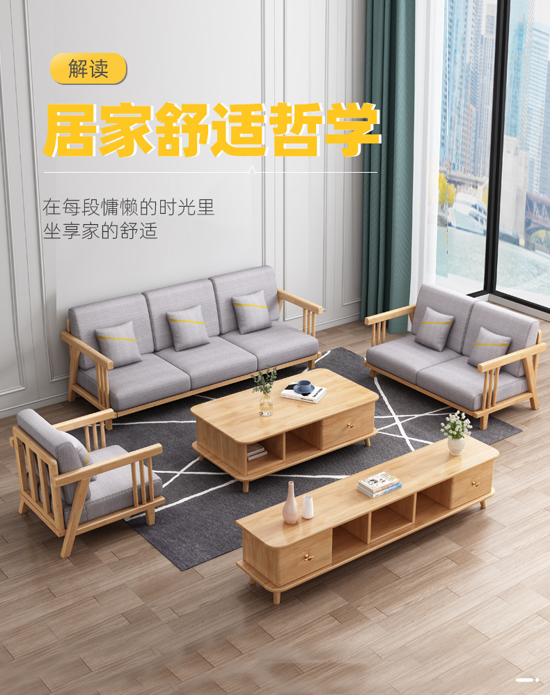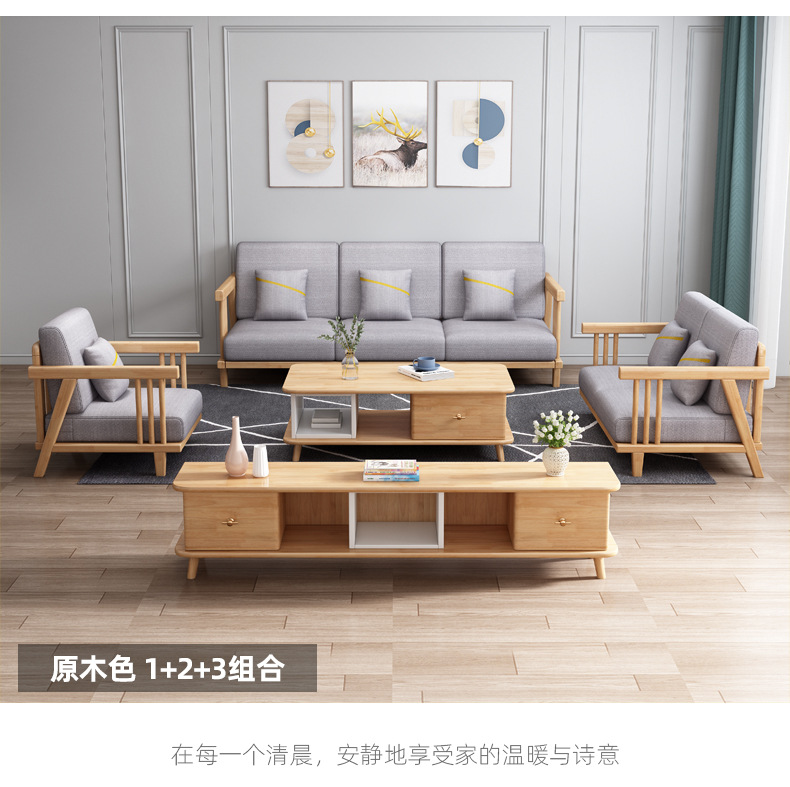 北欧冬夏両用実木ソファーセット現代シンプル小戸型客間家具オフィス民宿マンション