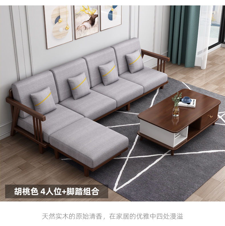 北欧の木のソファーの組み合わせは現代的でシンプルな小戸型で、コーナーの布芸のソファーの客間の原木のソファーを分解することができます。