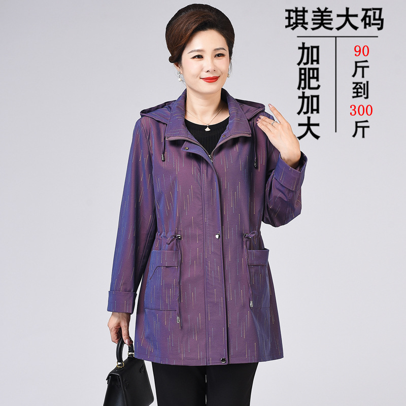 太った母は春秋に高齢者のコートを着て、特別な体に太って、200斤の風衣の中高年のおばあさんの服を着ます。