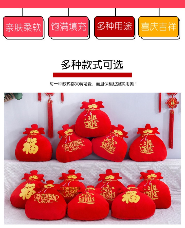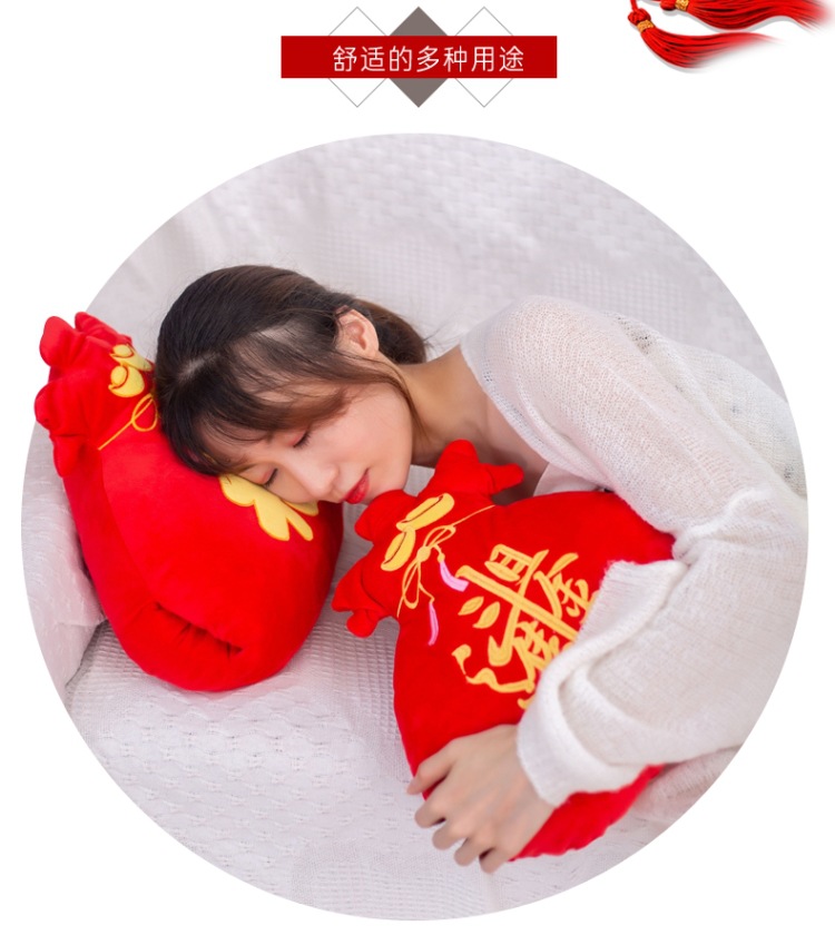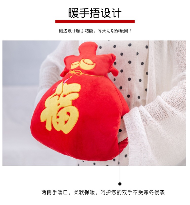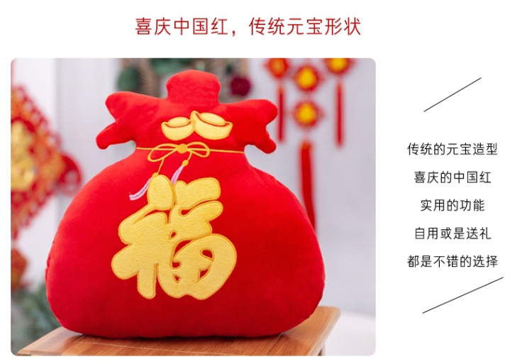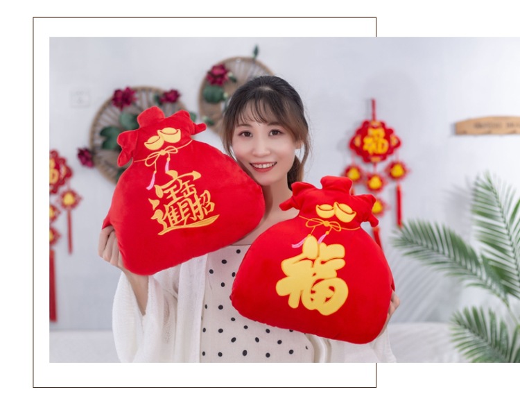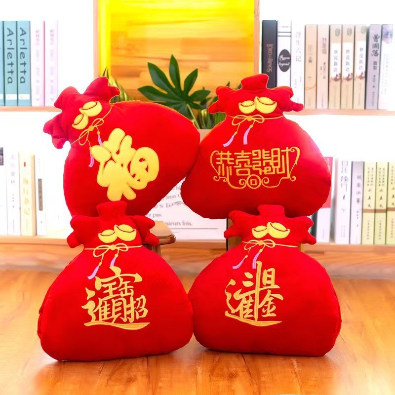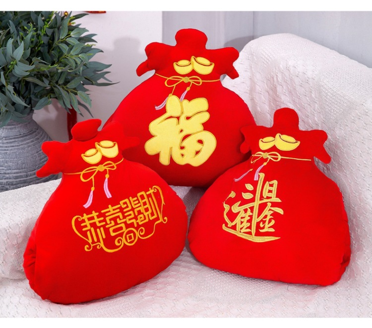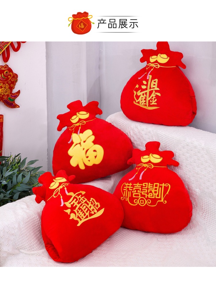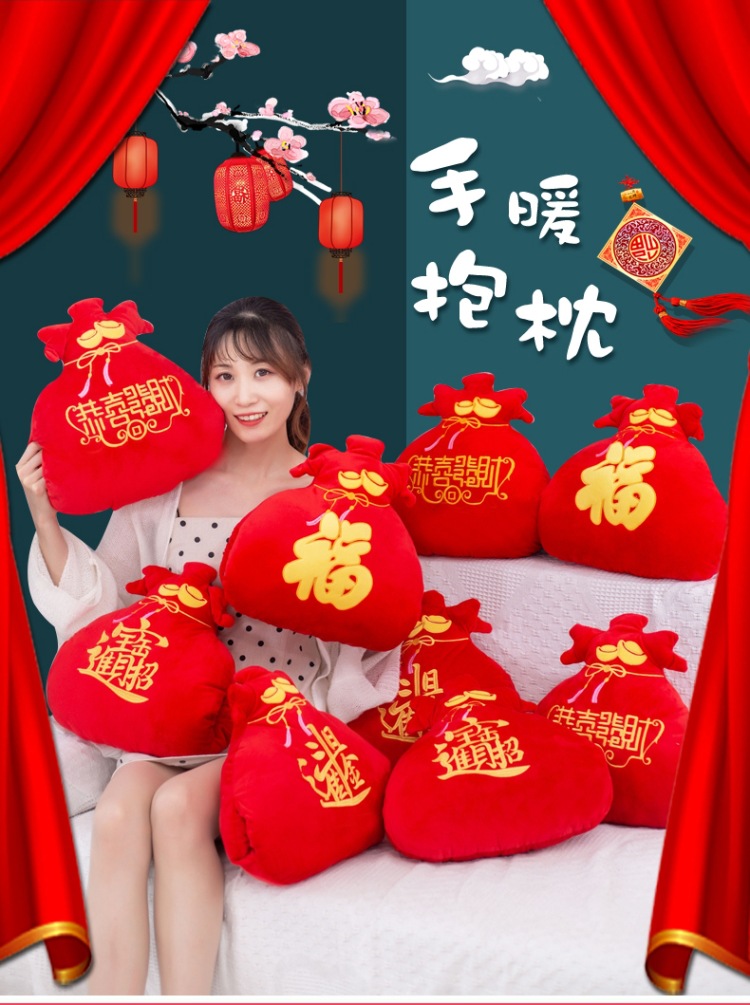新款福袋抱枕暖手可插手新年吉祥物毛绒玩偶喜庆沙发靠垫年会礼品