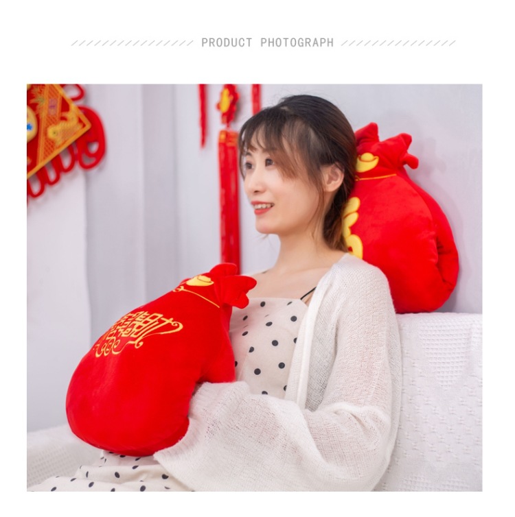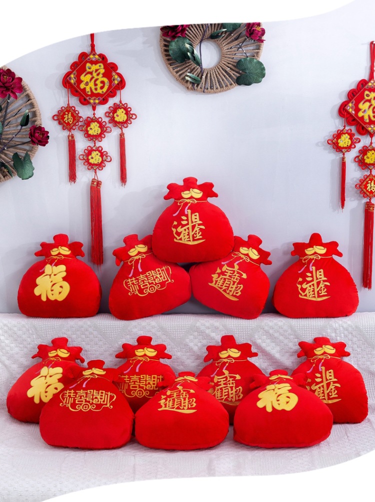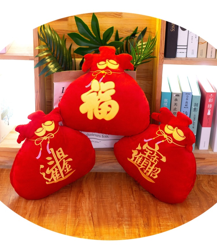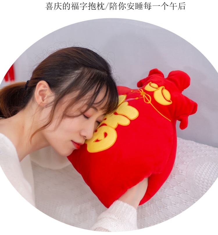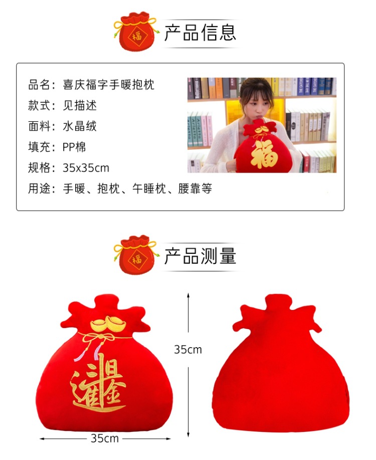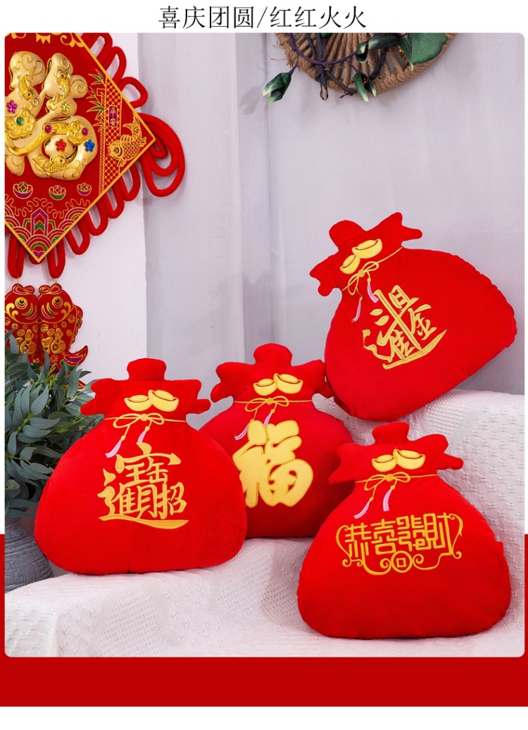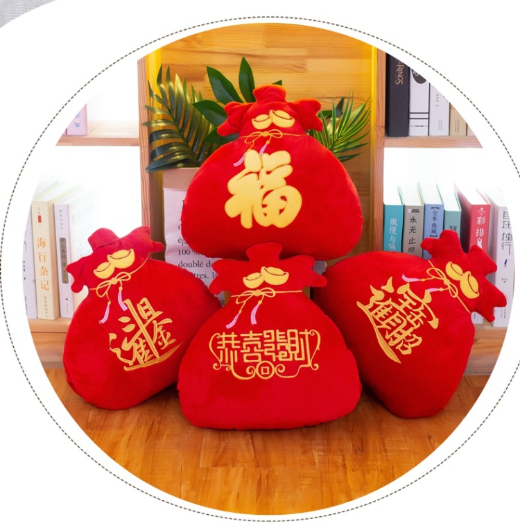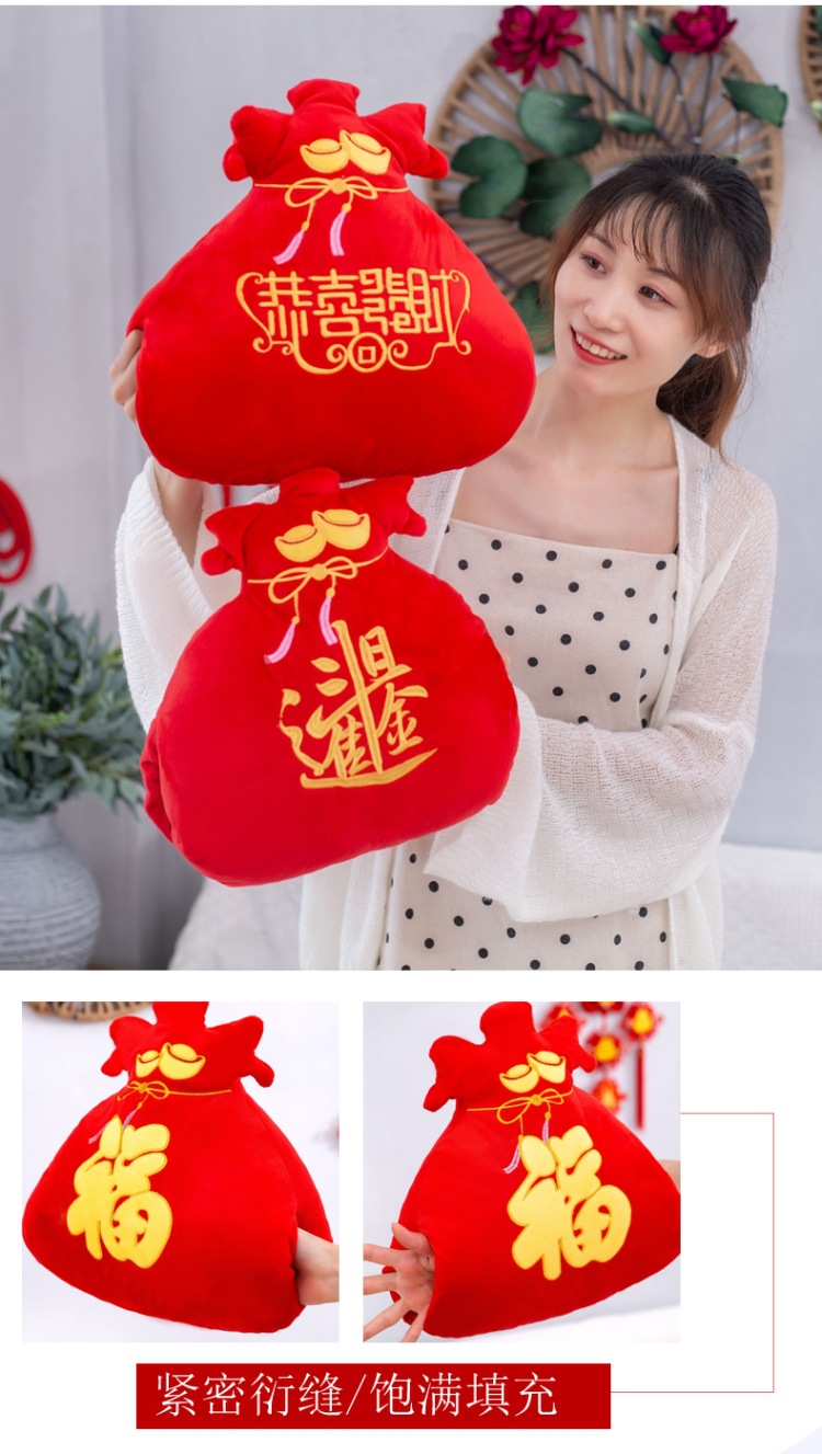 新款福袋抱枕暖手可插手新年吉祥物毛绒玩偶喜庆沙发靠垫年会礼品