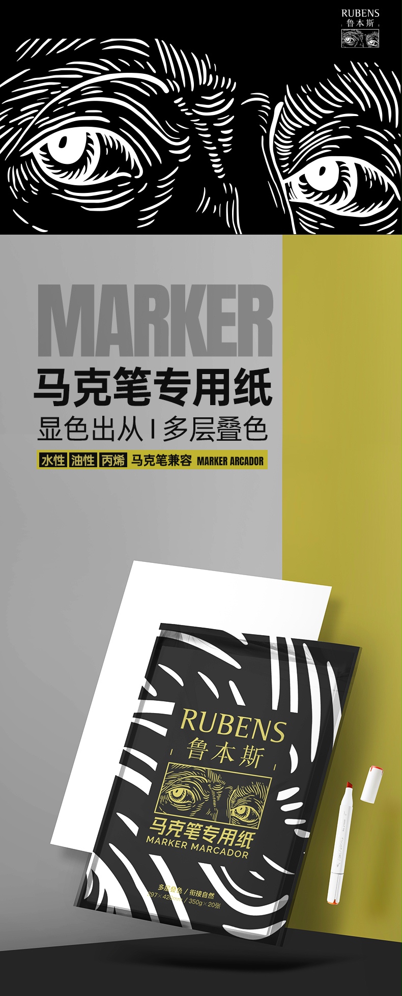 ルーベンスマーカーペン用纸絵画お絵かき白纸水彩学生用初心者a3 a4美术生用纸