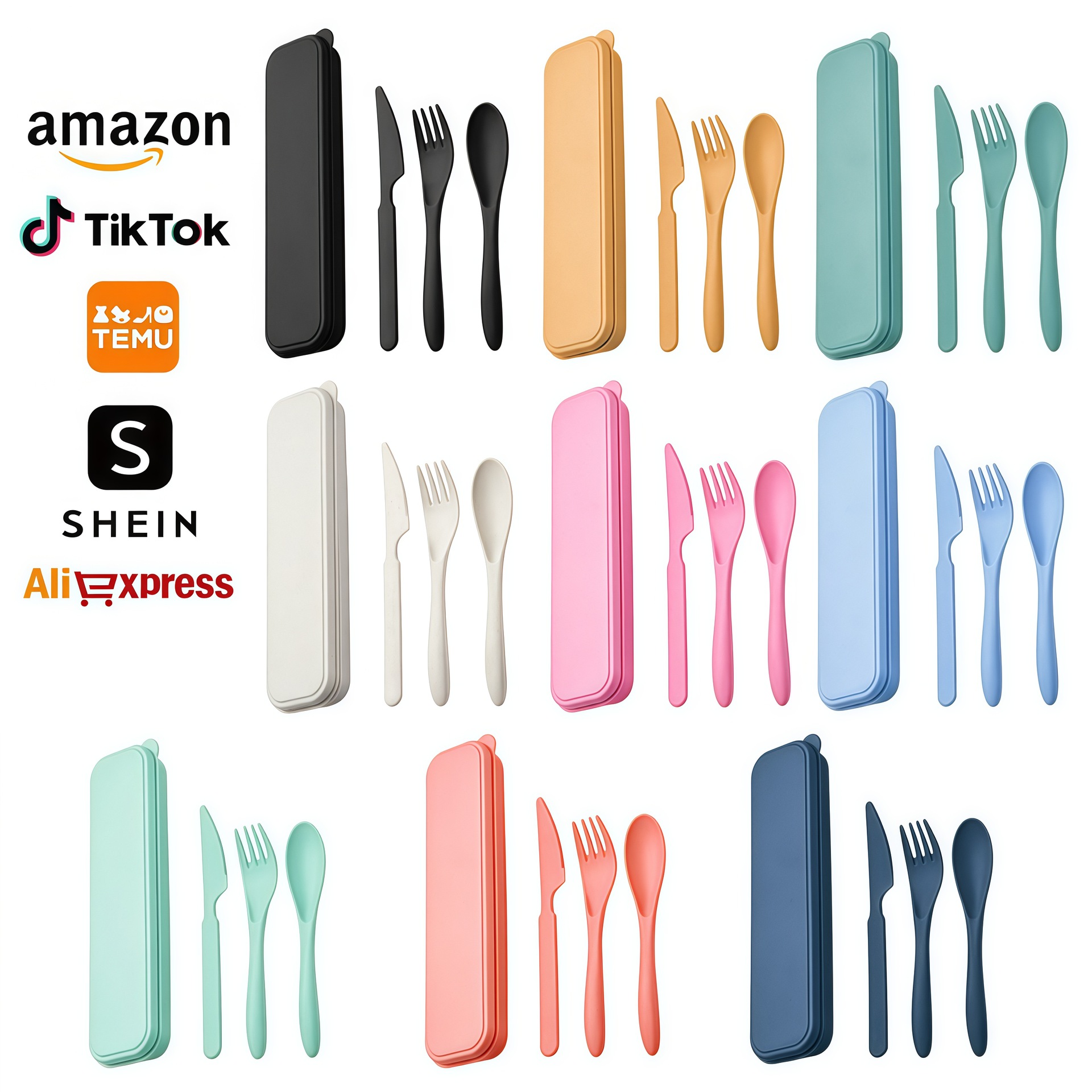 アマゾンでは、小麦わらナイフとフォークスプーンの食器セットが国境を越えて屋外旅行専用の3つのセットを持っています