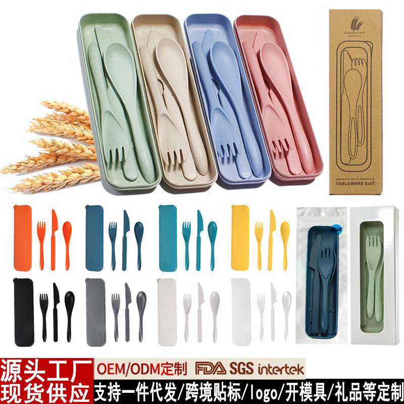 跨境小麦秸秆餐具户外便携餐具套装三件套刀叉勺旅行露营西餐具