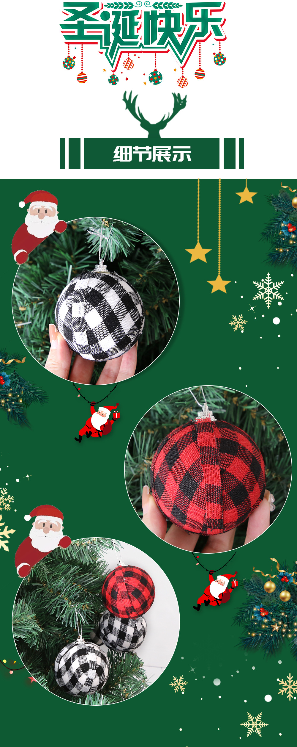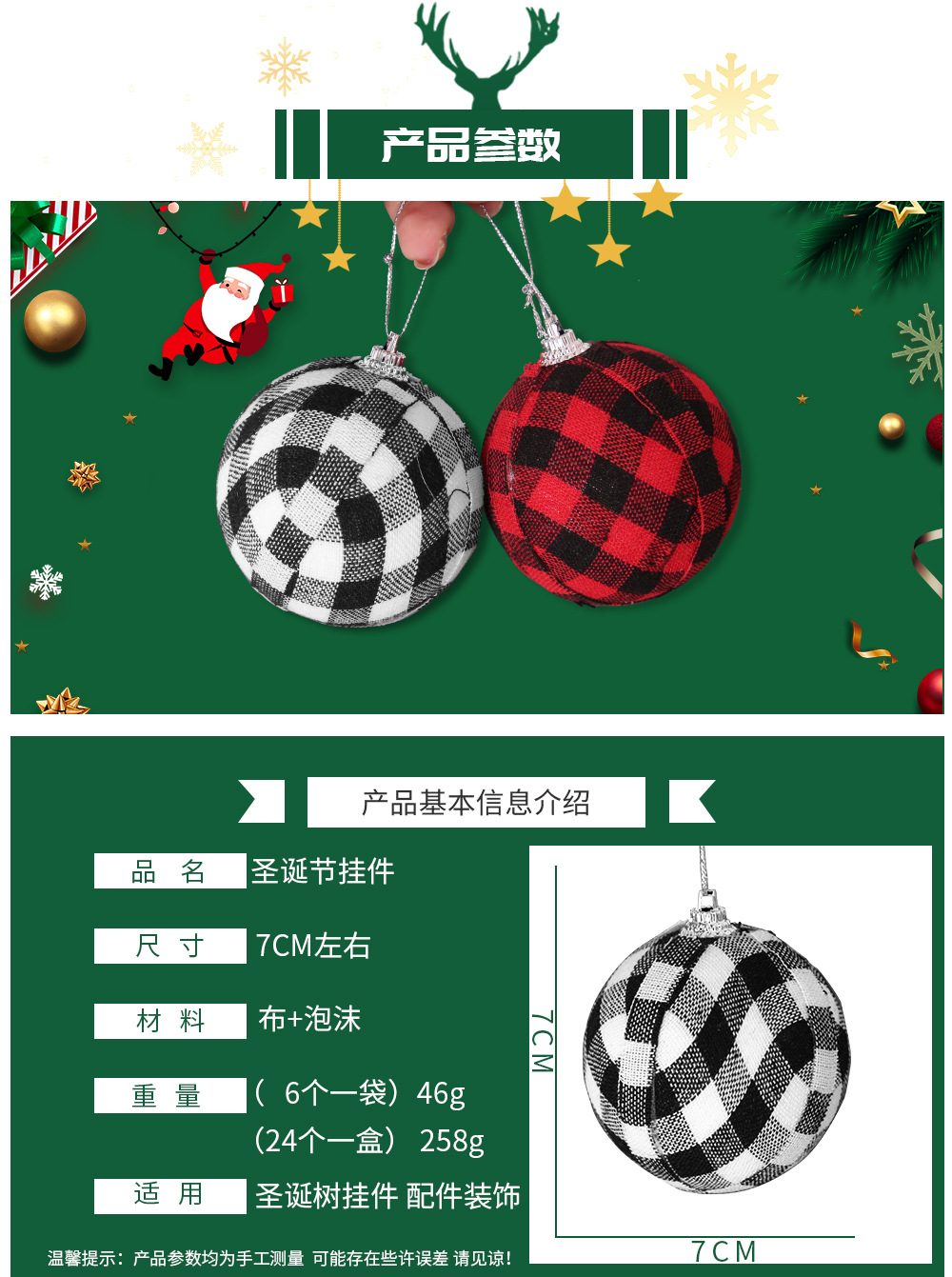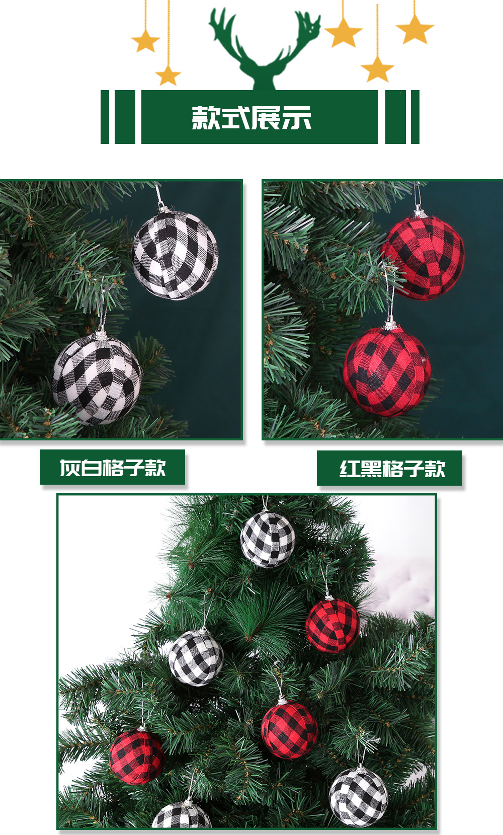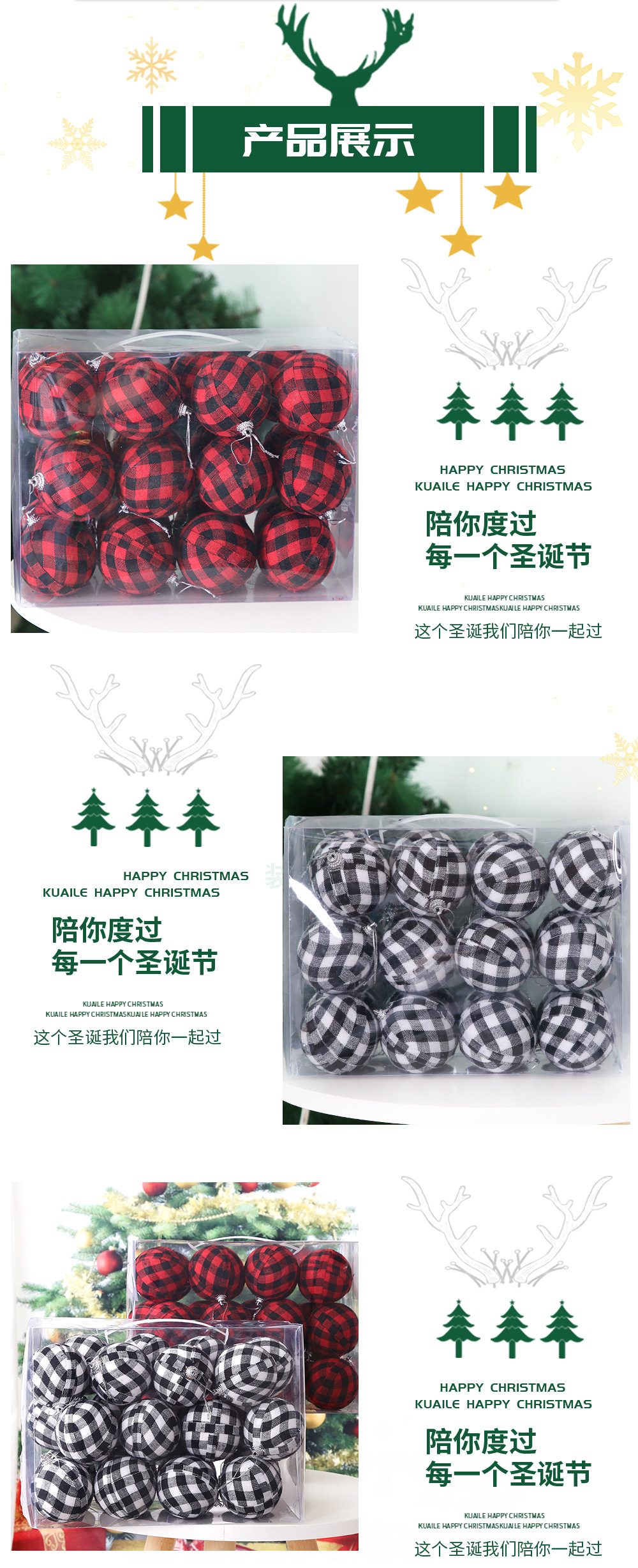 圣诞装饰7CM黑白红格子圣诞球挂饰套装圣诞树装饰彩球圣诞节挂件