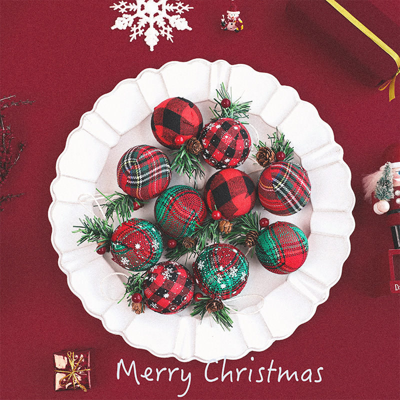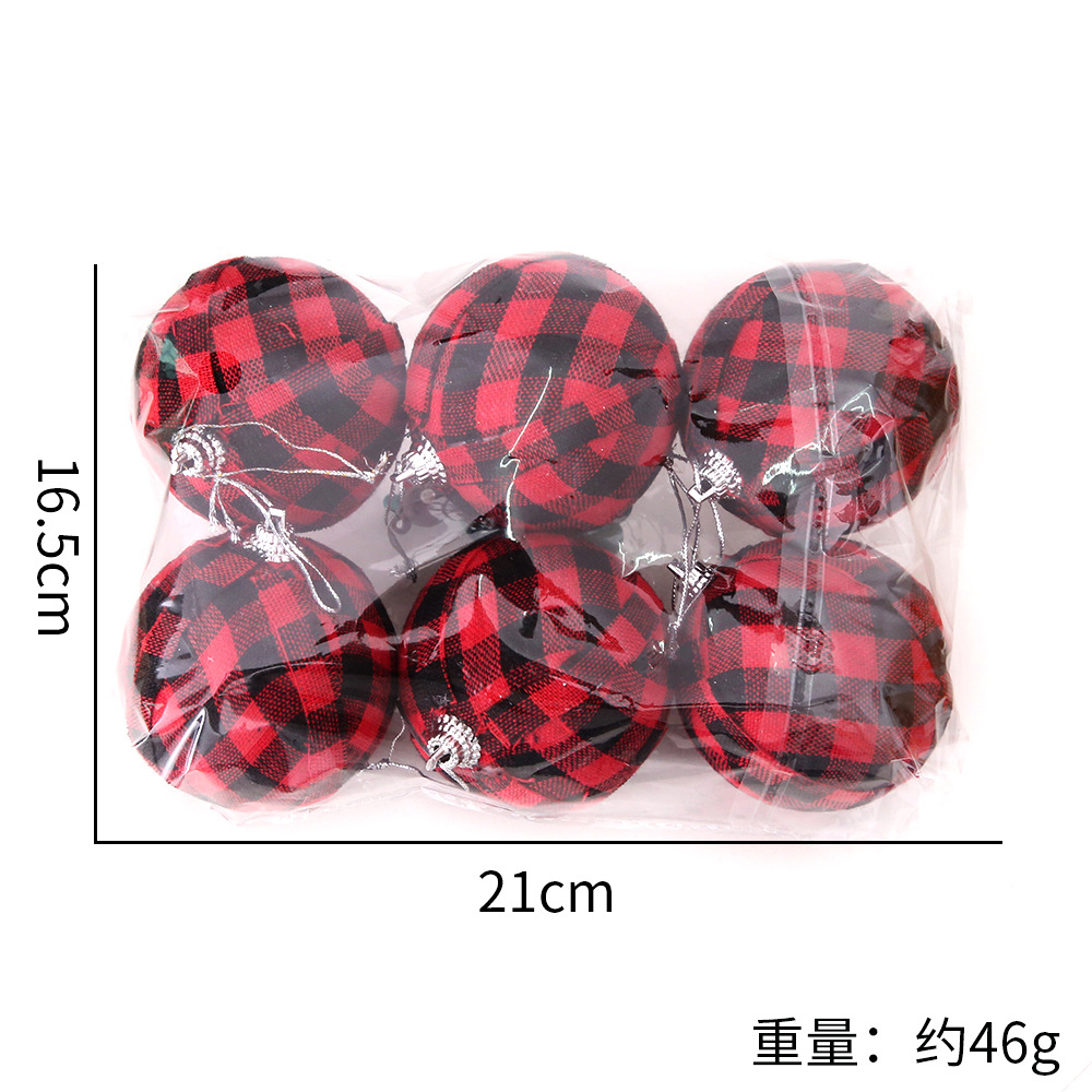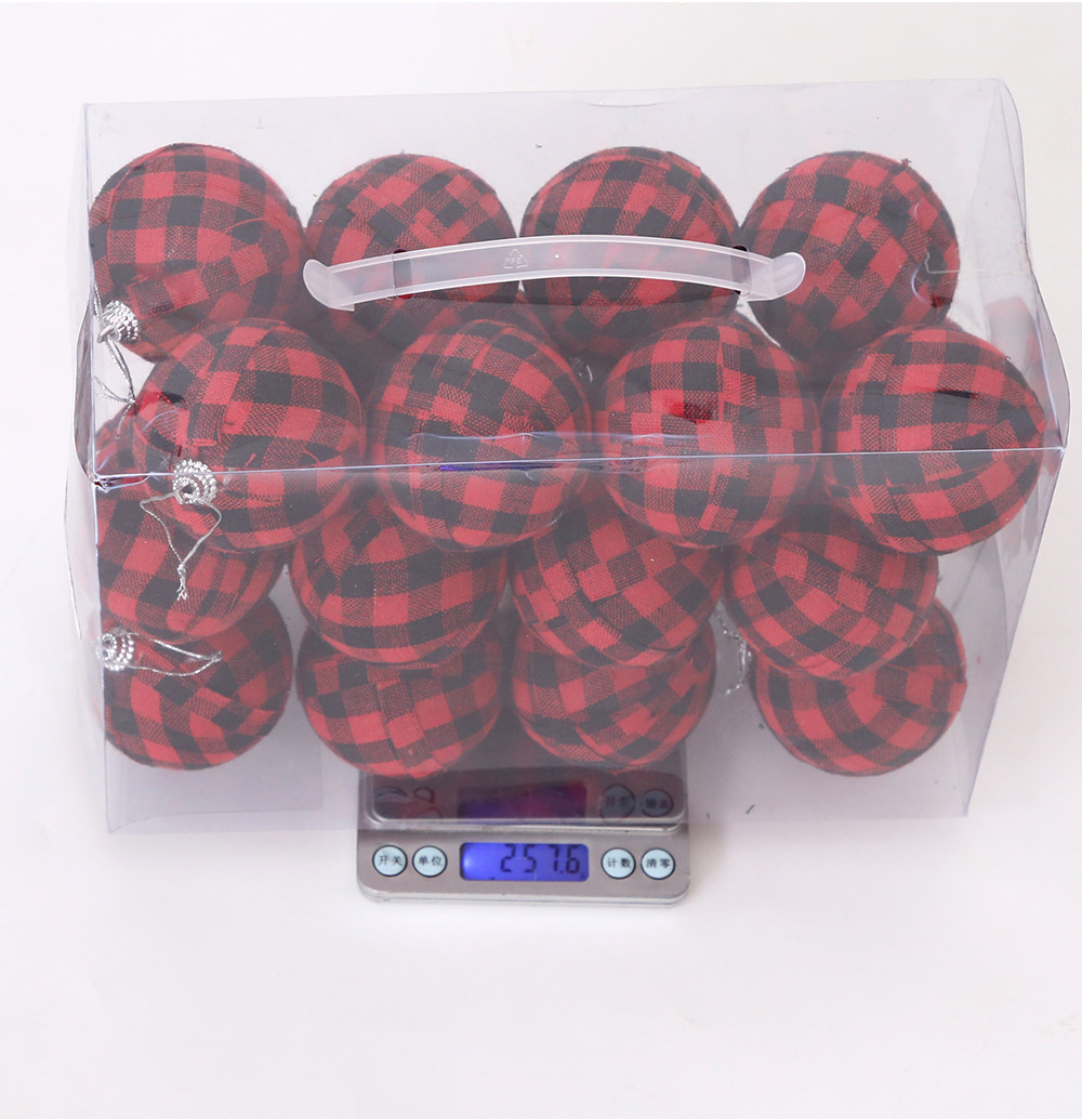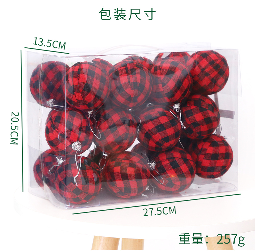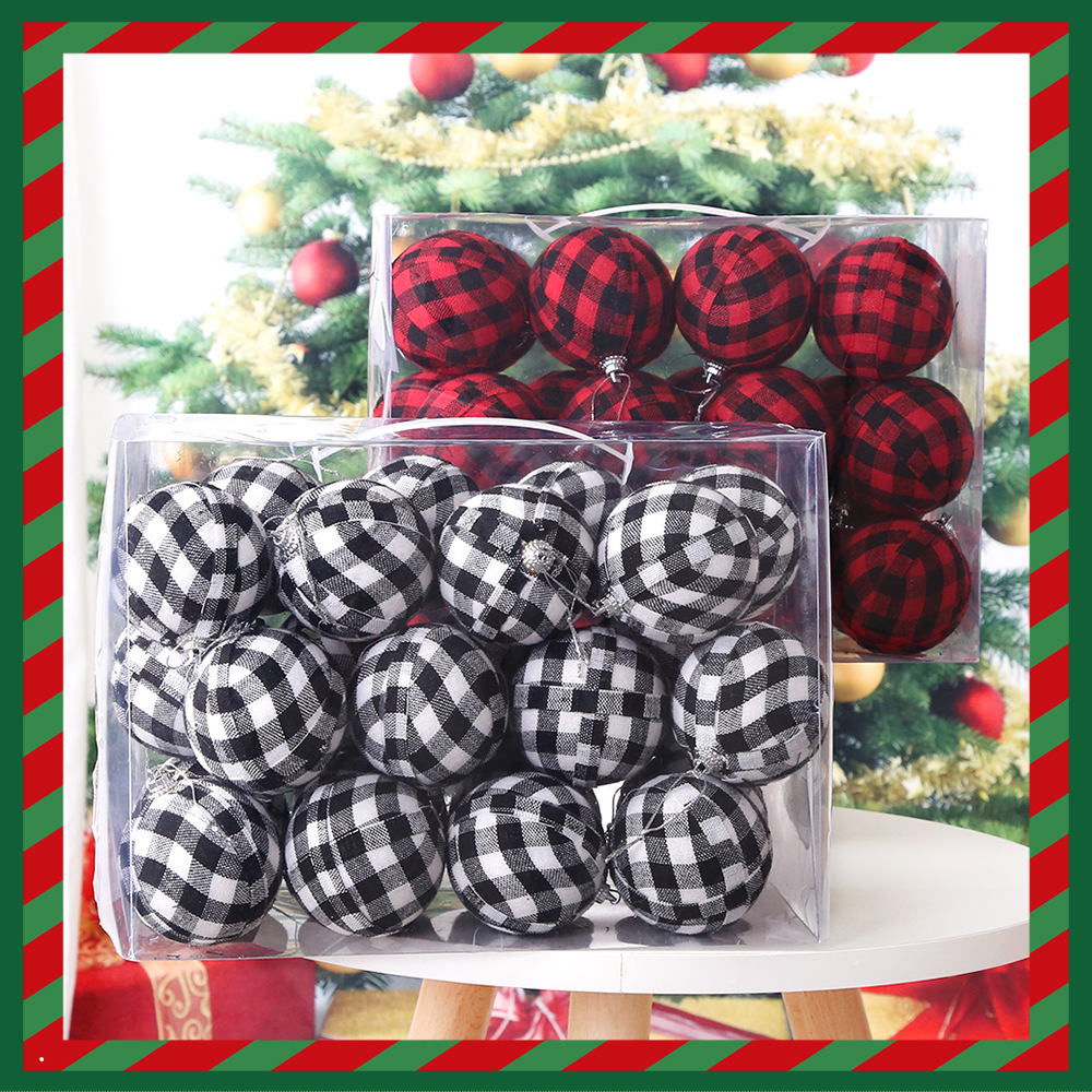 圣诞装饰7CM黑白红格子圣诞球挂饰套装圣诞树装饰彩球圣诞节挂件