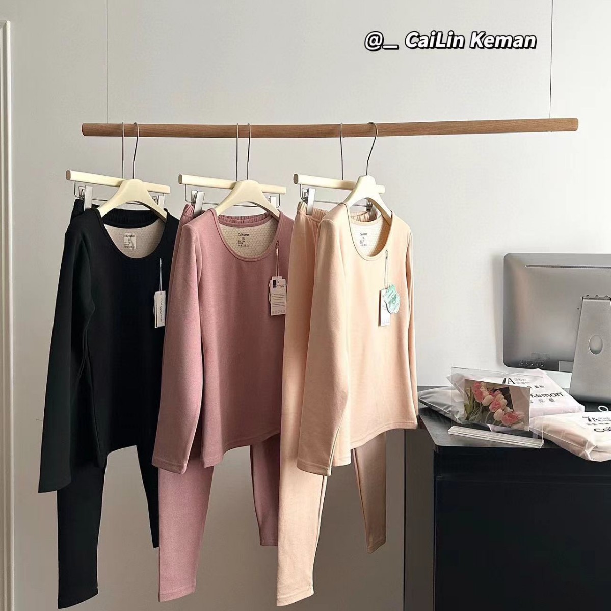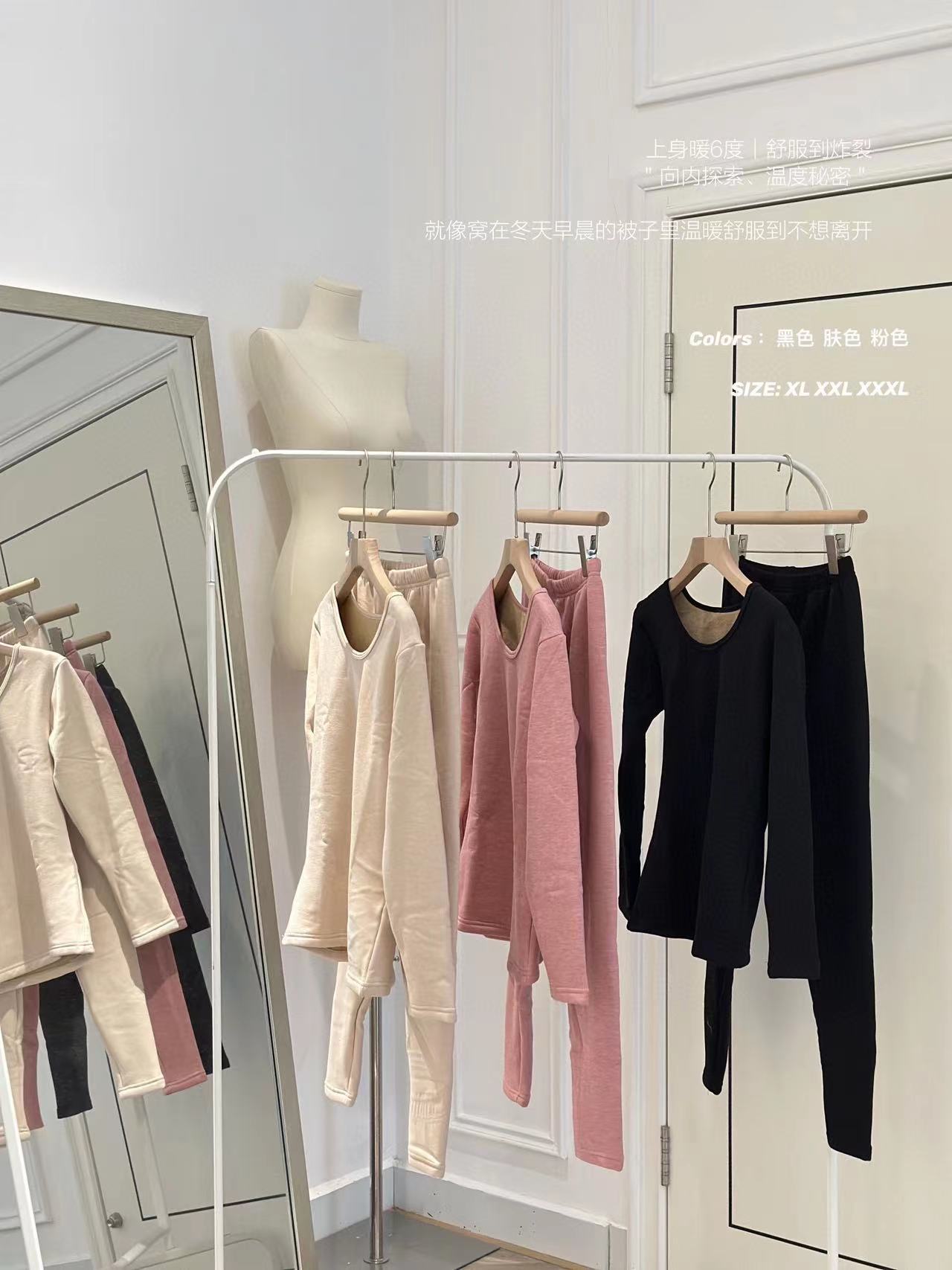 Cailin Keman骆驼绒发热温感加绒加厚御寒圆领纯色保暖内衣套装女