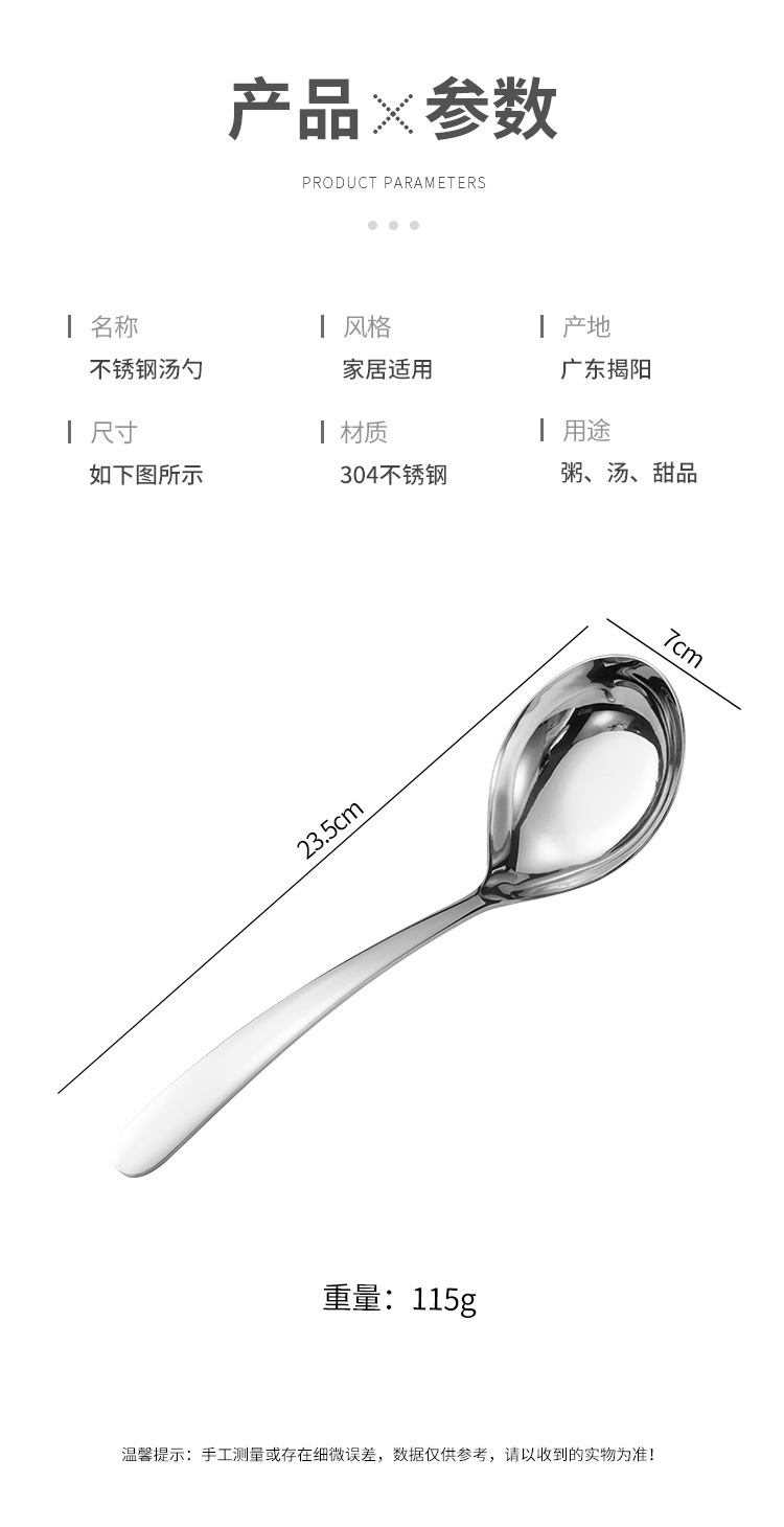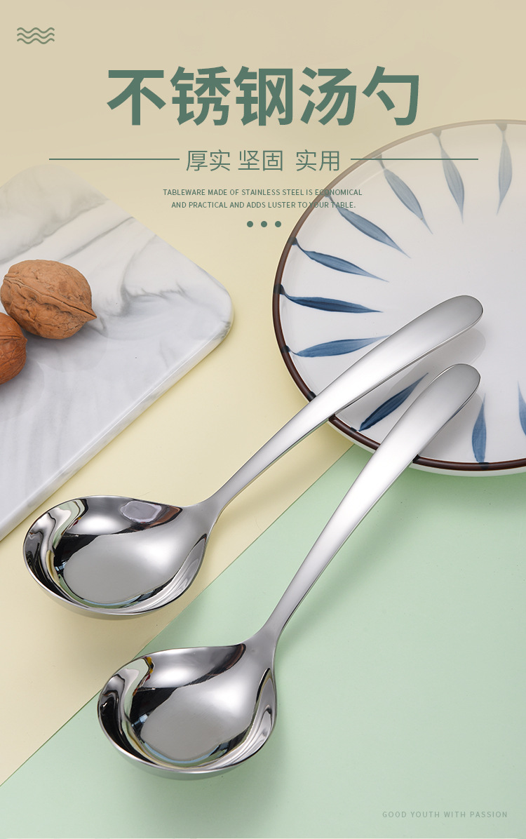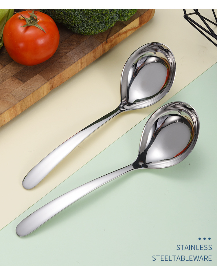 304ステンレスのフライパンのスプーンの高い顔の価値の家庭のおかゆのスプーンの餃子のスプーンの鍋のスプーンは大きい頭のスプーンを深めます。
