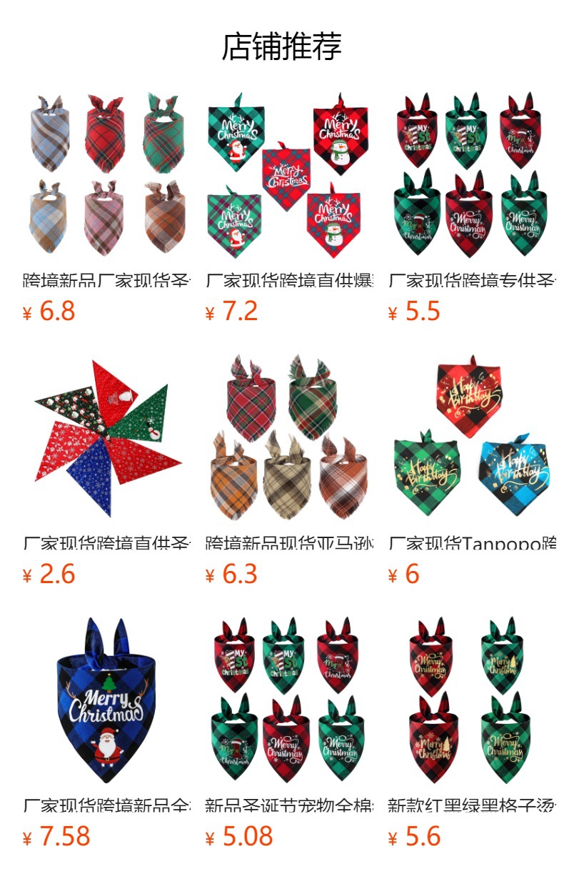 現物クロスボーダーアマゾン爆発犬クリスマス唾タオル格子犬マフラーペット装飾三角タオル卸売り