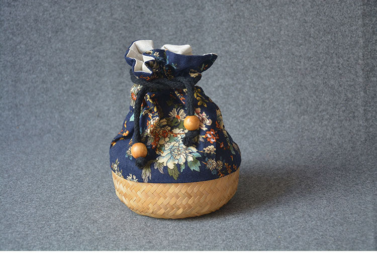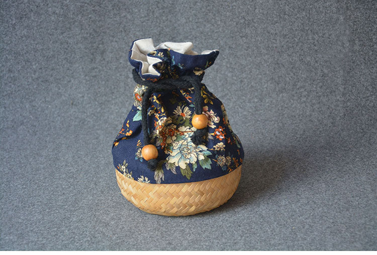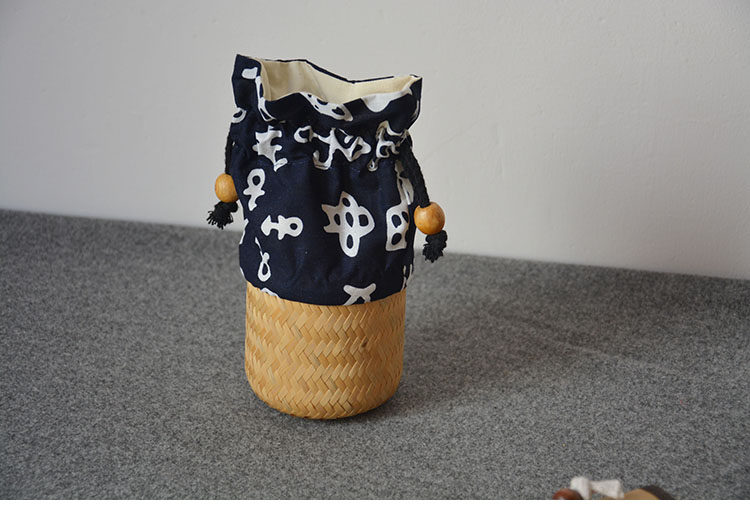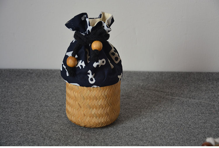青花布袋盒大号:直立整体高23CM,抽绳束口处距底部19CM,盒子直径15CM