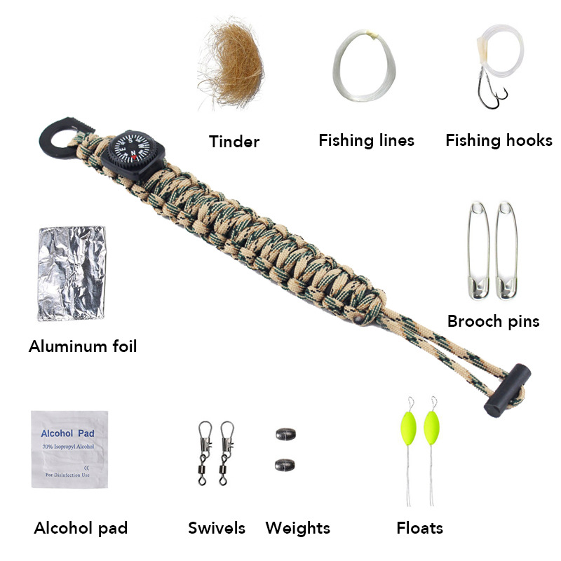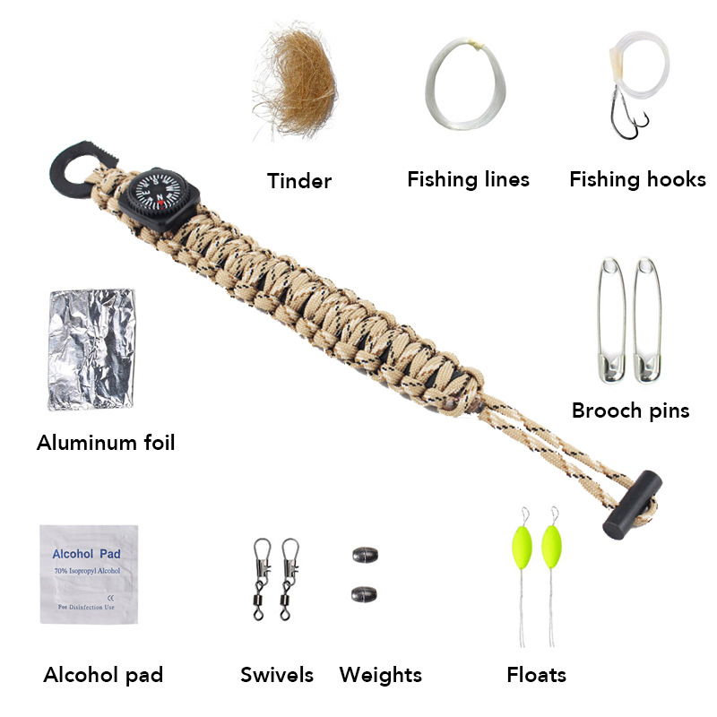 伞绳的其它用途伞绳是一种重要户外求生工具。在户外运动中伞绳可以做很多事,比如住房建设;维修设备和服装;做陷阱和渔网;制作钻木起火使的火弓等。伞绳原来是降落伞上的操纵线,后来在各国地方做为标准实用绳索使用。伞绳是一种轻量化的人工绳索,通常由32股尼龙绳编织成。每股尼龙绳包含一定数量的细线,这些细线可以单独使用。在大多数情况下伞绳是一个很好选择,因为它实用,牢固,体积小、易于携带。在您准备旅行前,你确认要用多少伞索。请务必把它包在两个地方,放在你的背包里和随身携带。这是为在和你的包分开的时候,也有伞绳可用。{{{{{{{{{{