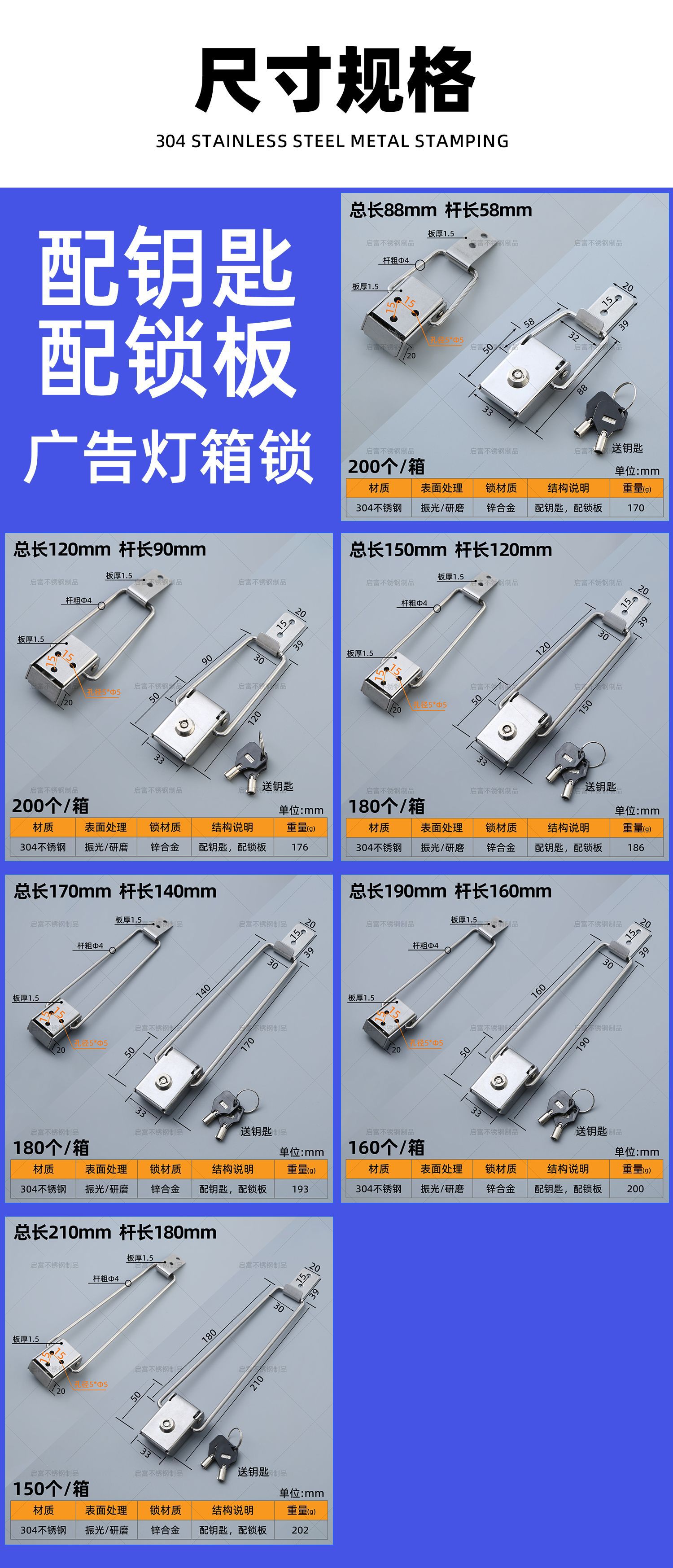 厚さ304ステンレス看板ランプハウスロック待合室バスホームロック宣伝欄ロック箱ロック