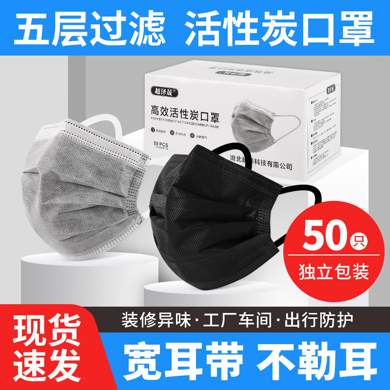 活性炭マスク50枚、使い捨て、4層・5層構造、防塵、ホルムアルデヒド除去、消臭、通気性、個別包装、保護