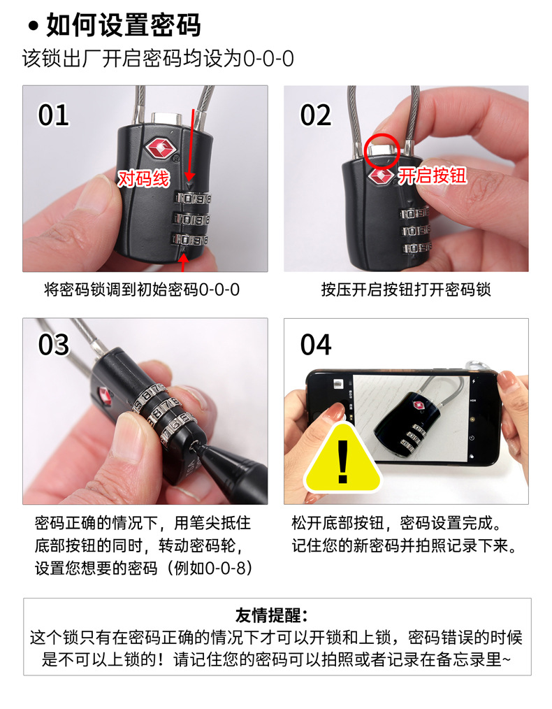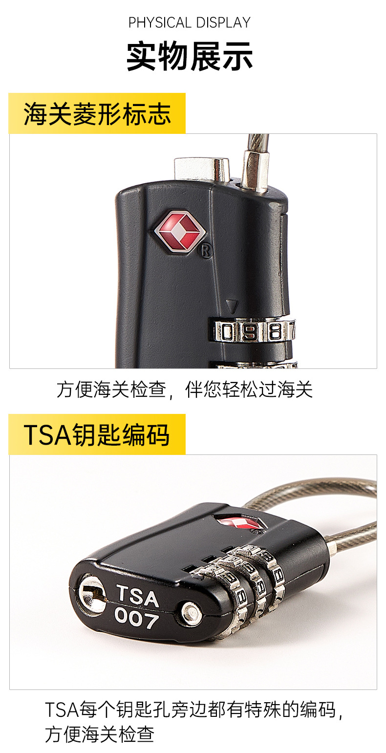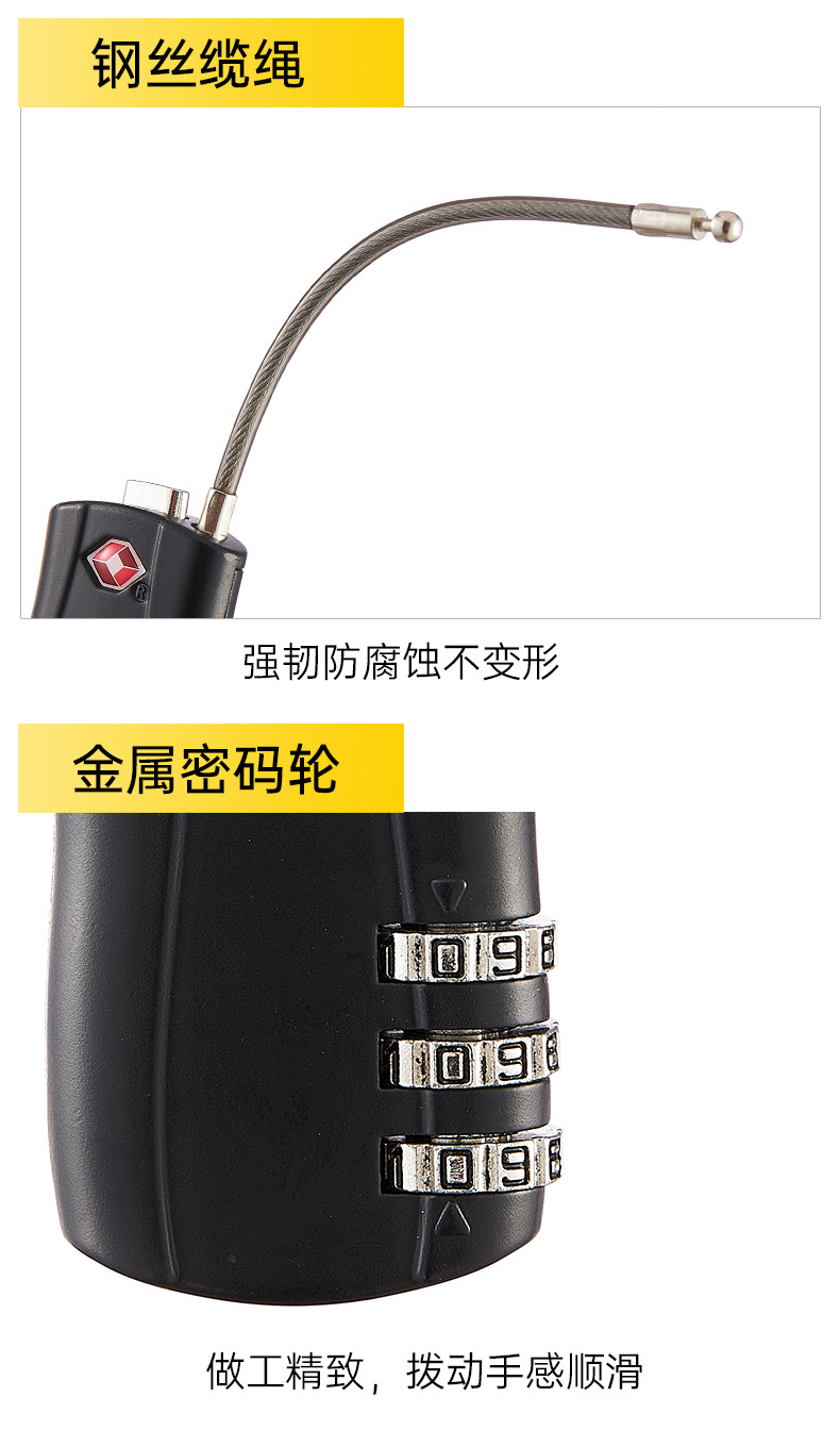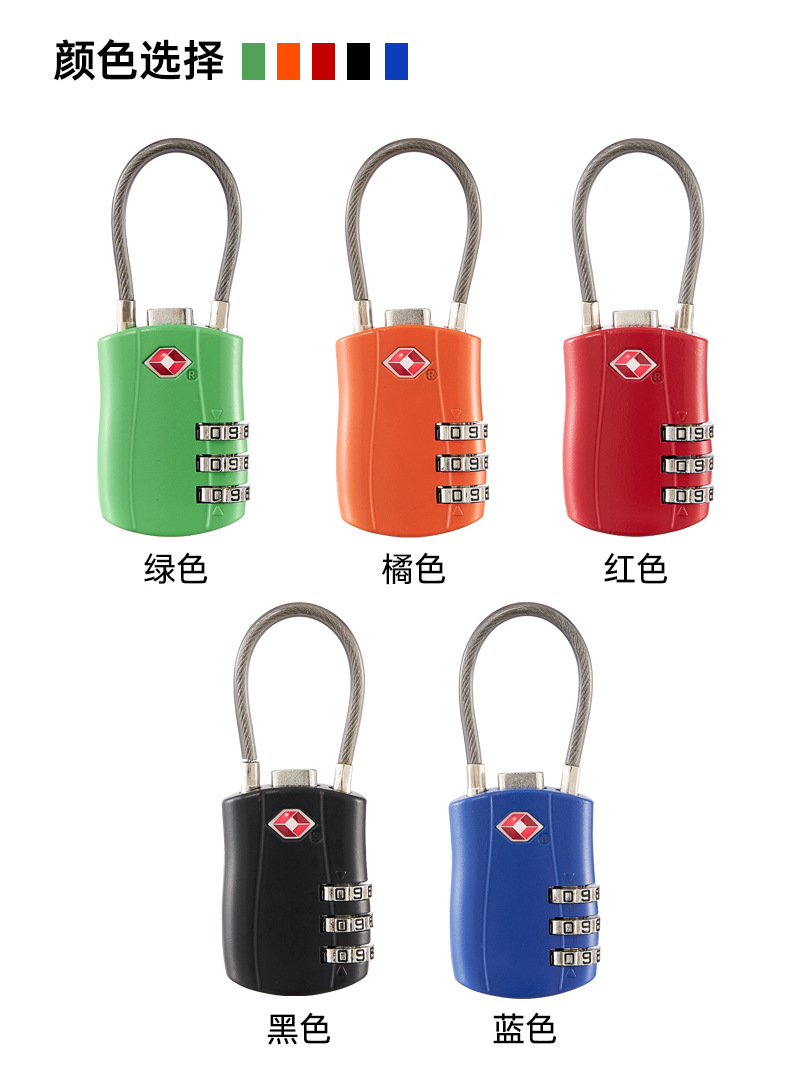 源工場は新型亜鉛合金ワイヤーロープTSA税関ロック旅行通関ロックバッグ三位パスワードTを生産している