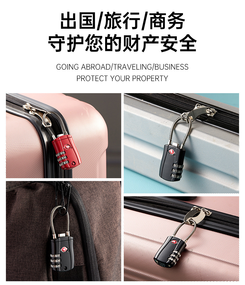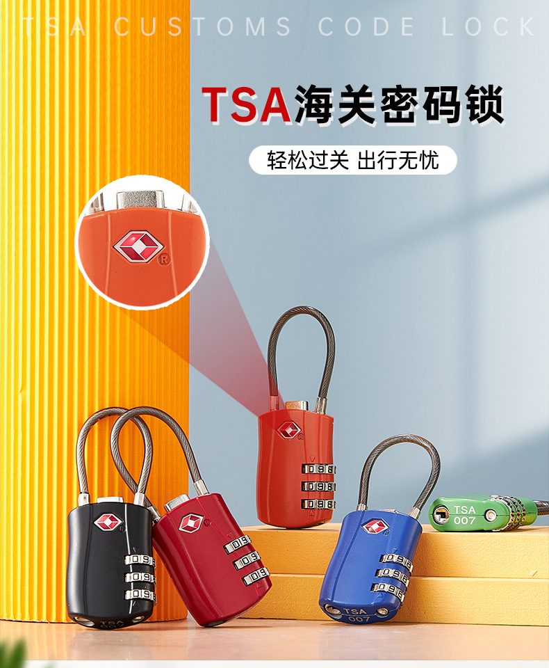 Tsa税関ロック19年新作亜鉛合金海外用品バッグチャックロックワイヤーロープ税関パスワードロック