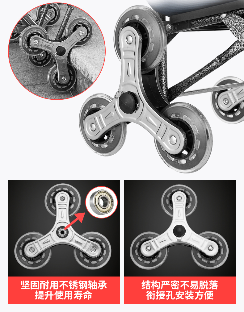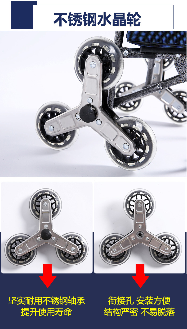 階段を登る三角車のトロリー荷物車の老人のトロリー車のゴム車の改造部品