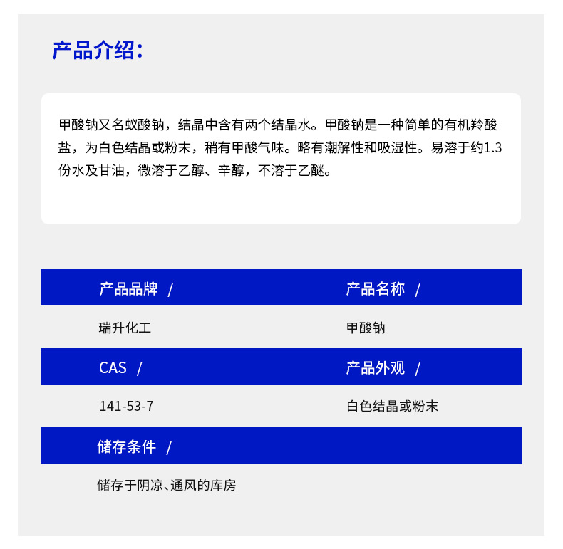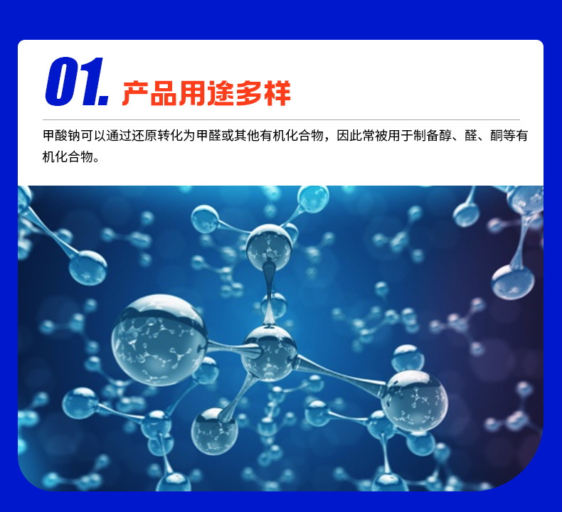 現物はギ酸ナトリウム還元剤掘削助剤の融雪剤などの溶剤工業級ギ酸ナトリウムを供給しています。