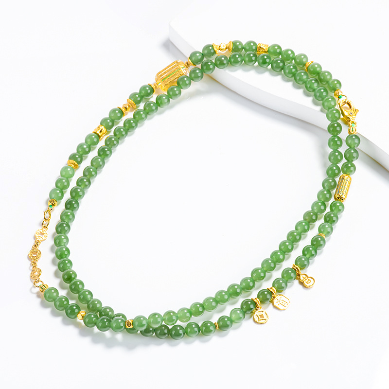 菠菜绿老料和田玉碧玉圆珠项链吊坠S925银天然玉石女款手链新中式