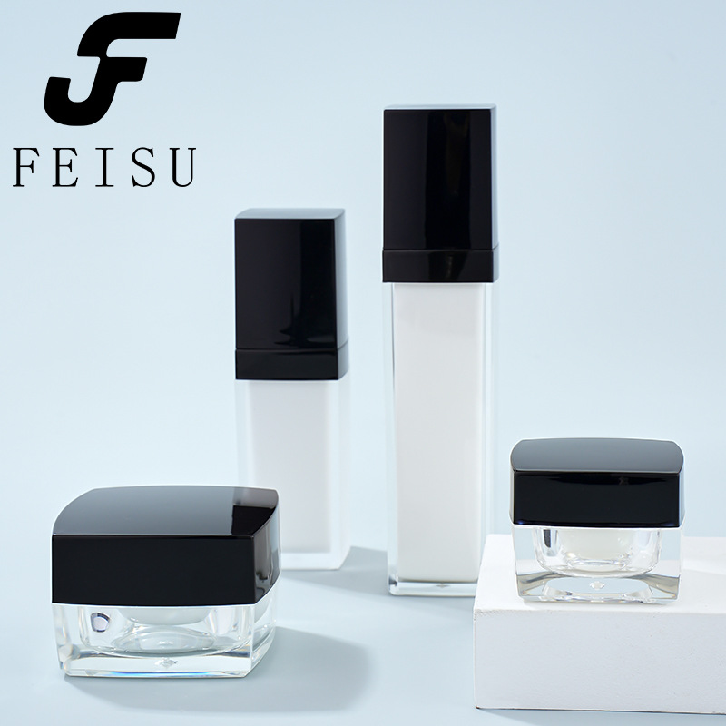 化粧品四角アクリルボトル100MLローションポンプボトル30G二層クリームセットボトル在庫卸売