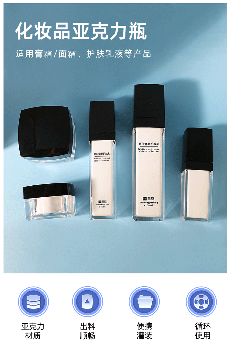 现货 30ml 50ml 100ml 亚克力四方水乳瓶化妆品瓶膏霜面霜分装瓶