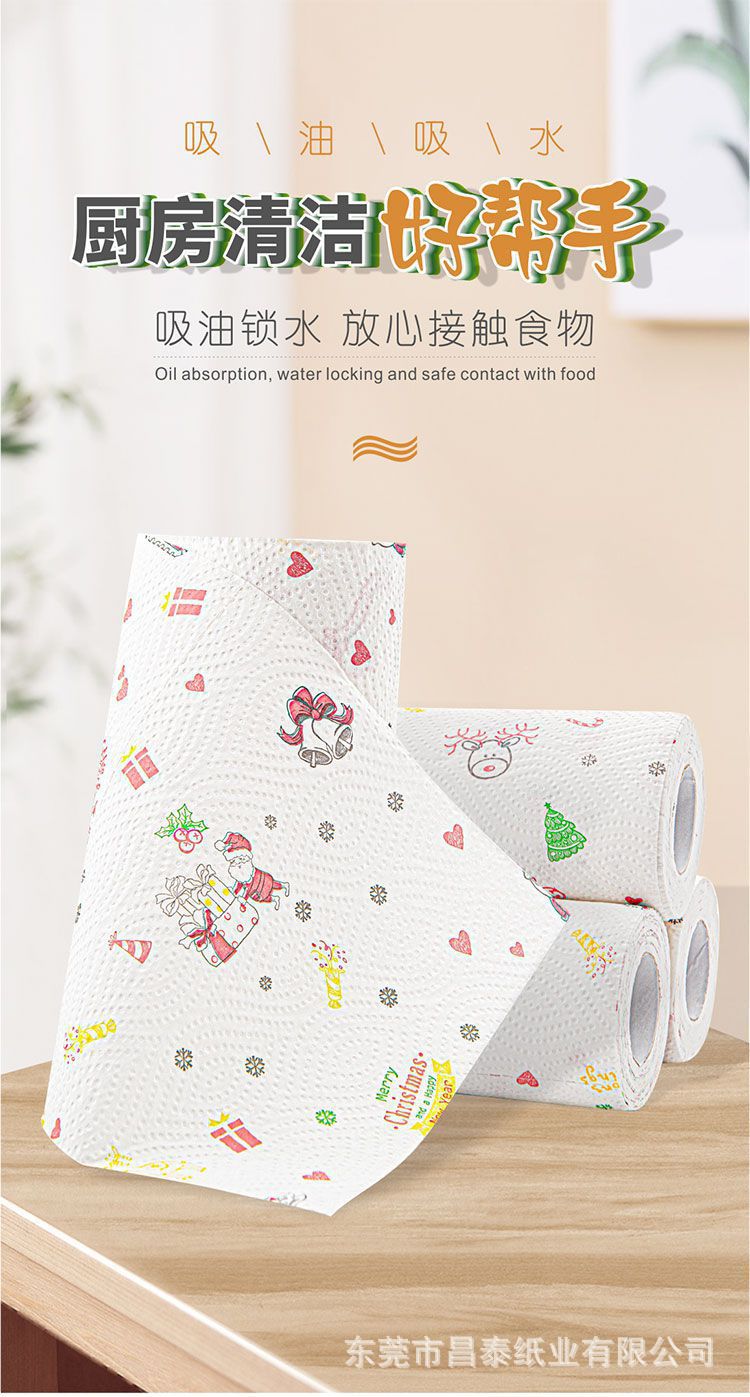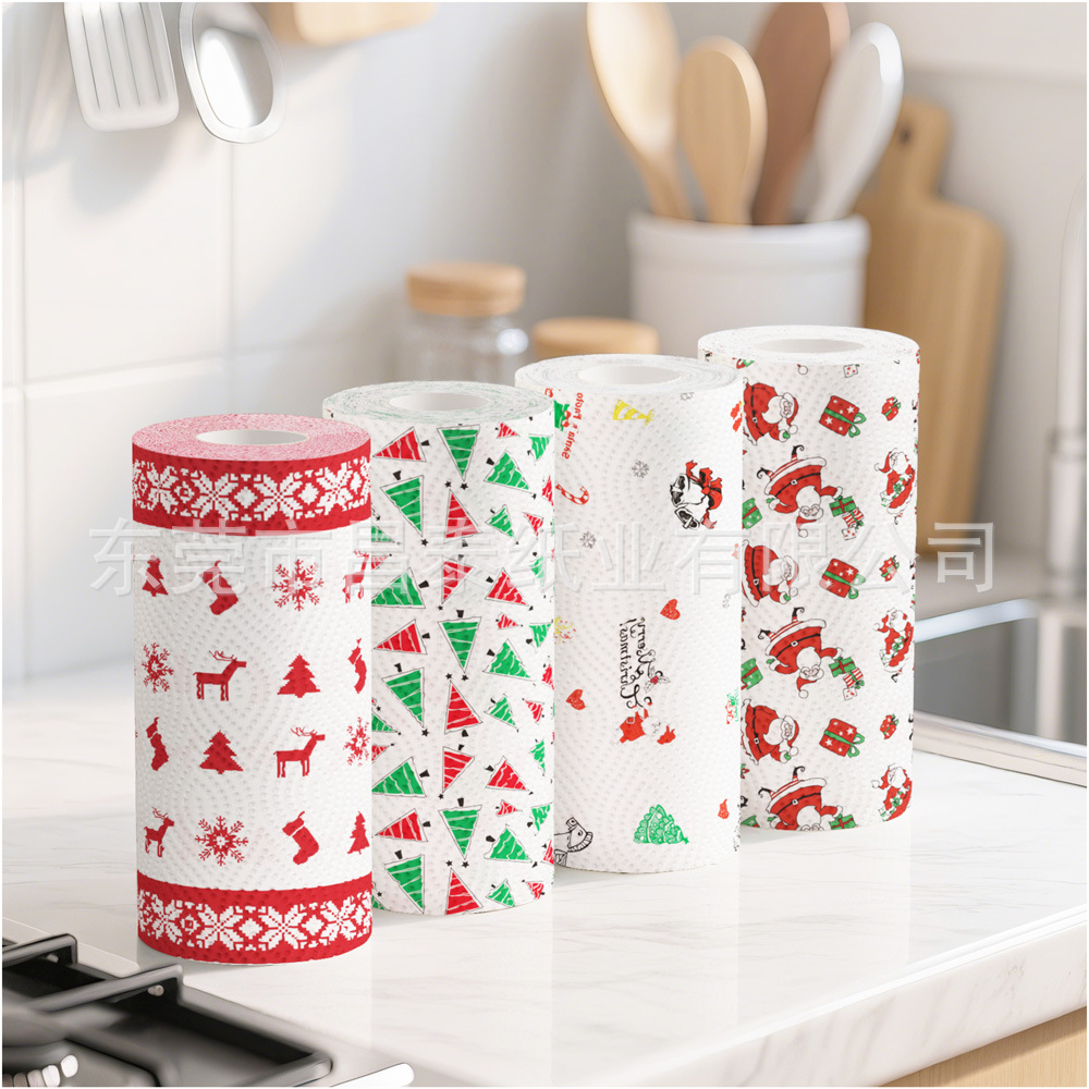 クリスマス柄のペーパータオル、キッチン用クリーニングペーパー、油汚れを落とすクリスマス柄のキッチンペーパー、クリスマス柄のロールペーパーをメーカーから供給しています。