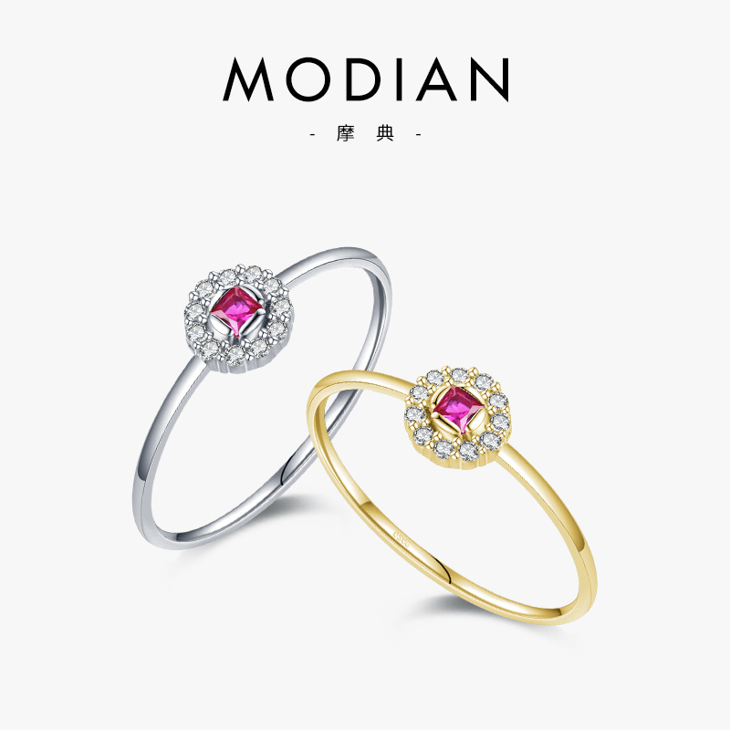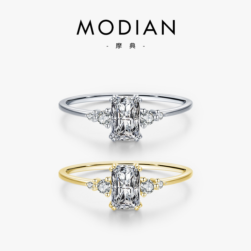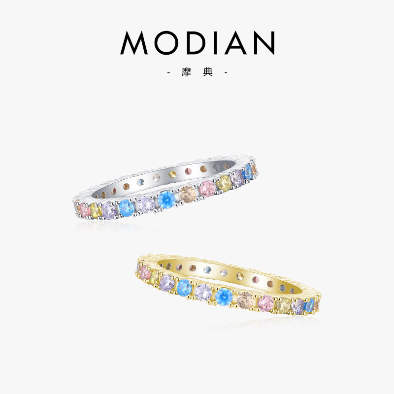 MODIAN摩典D色莫桑ドリルs 925純銀日韓贅沢気質超フラッシュドリル指輪食指戒女