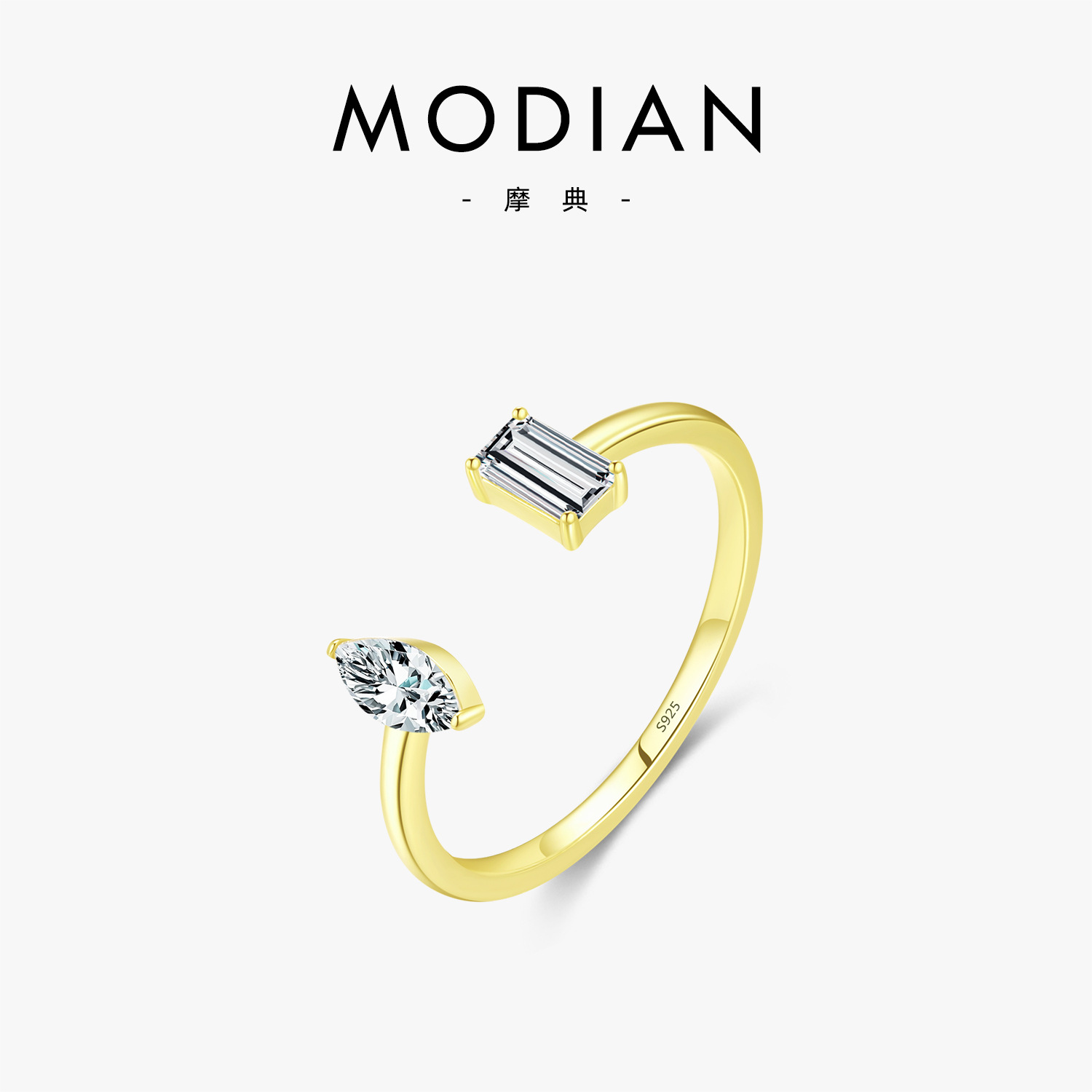 Modian摩典925純銀シンプルk金色幾何学指輪女性大衆デザインins風調節可能な指輪