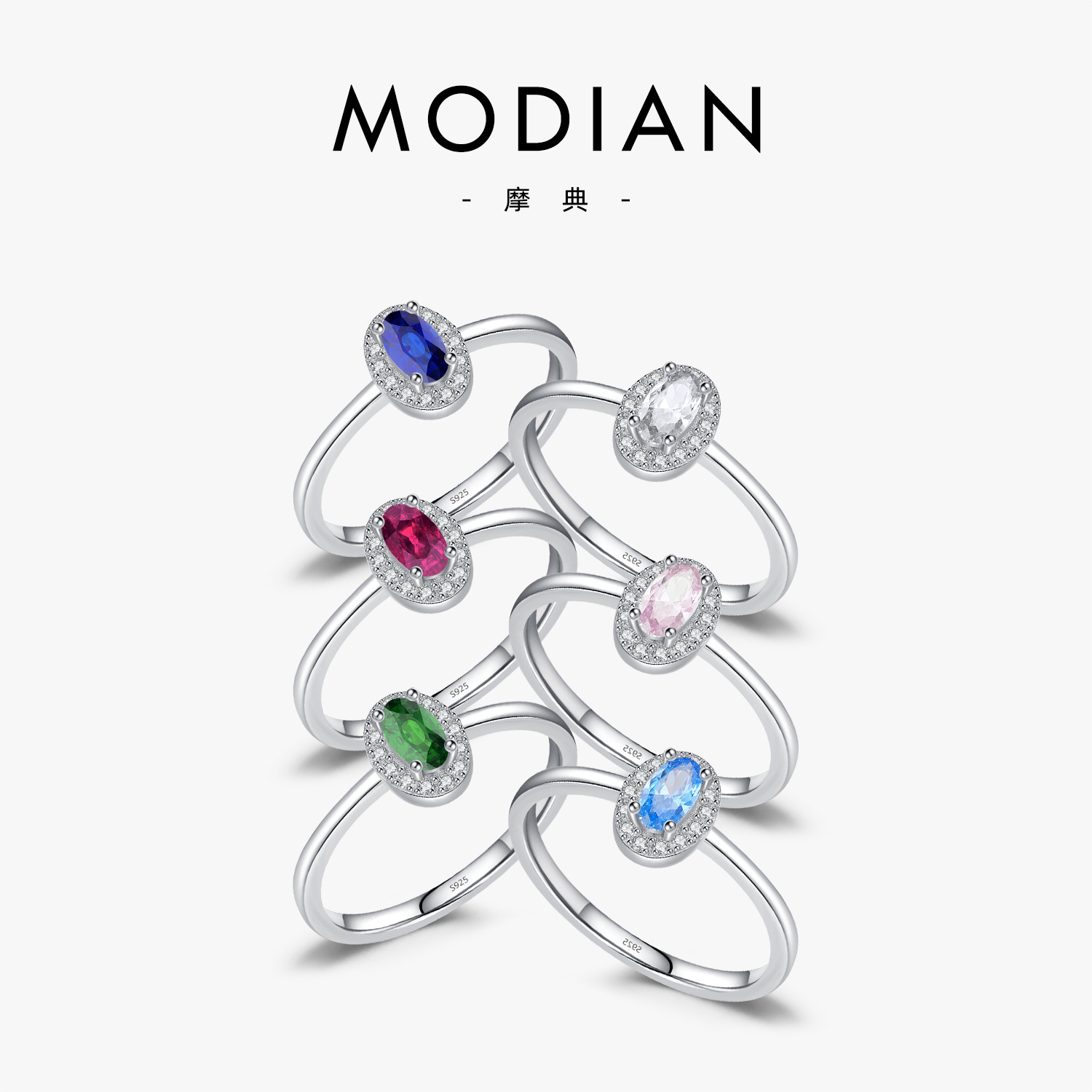 Modian 925純銀多色卵面指輪の女性は、贅沢で洗練された欧米風が優雅な指輪を輝かせている
