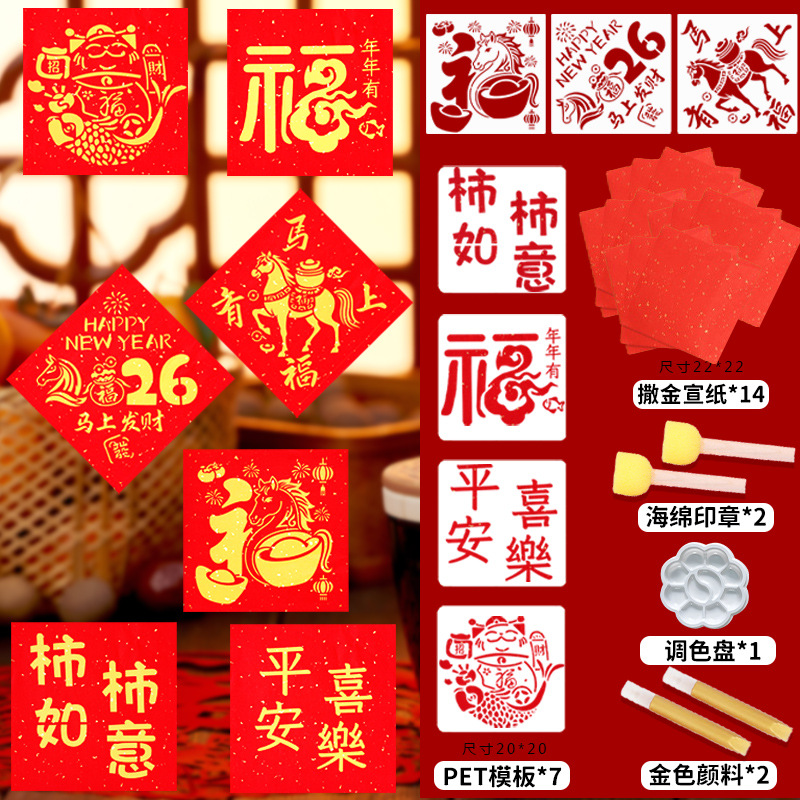 馬年手漉き福字DIY素材パック 美術幼稚園親子新年団体活動暖房活動