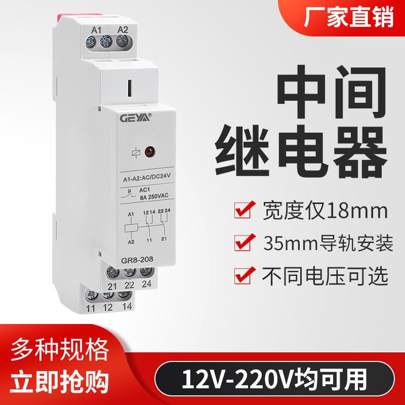 Gr8小型中間リレー12v/24v/48v/220v交流直流制御スイッチレール取付