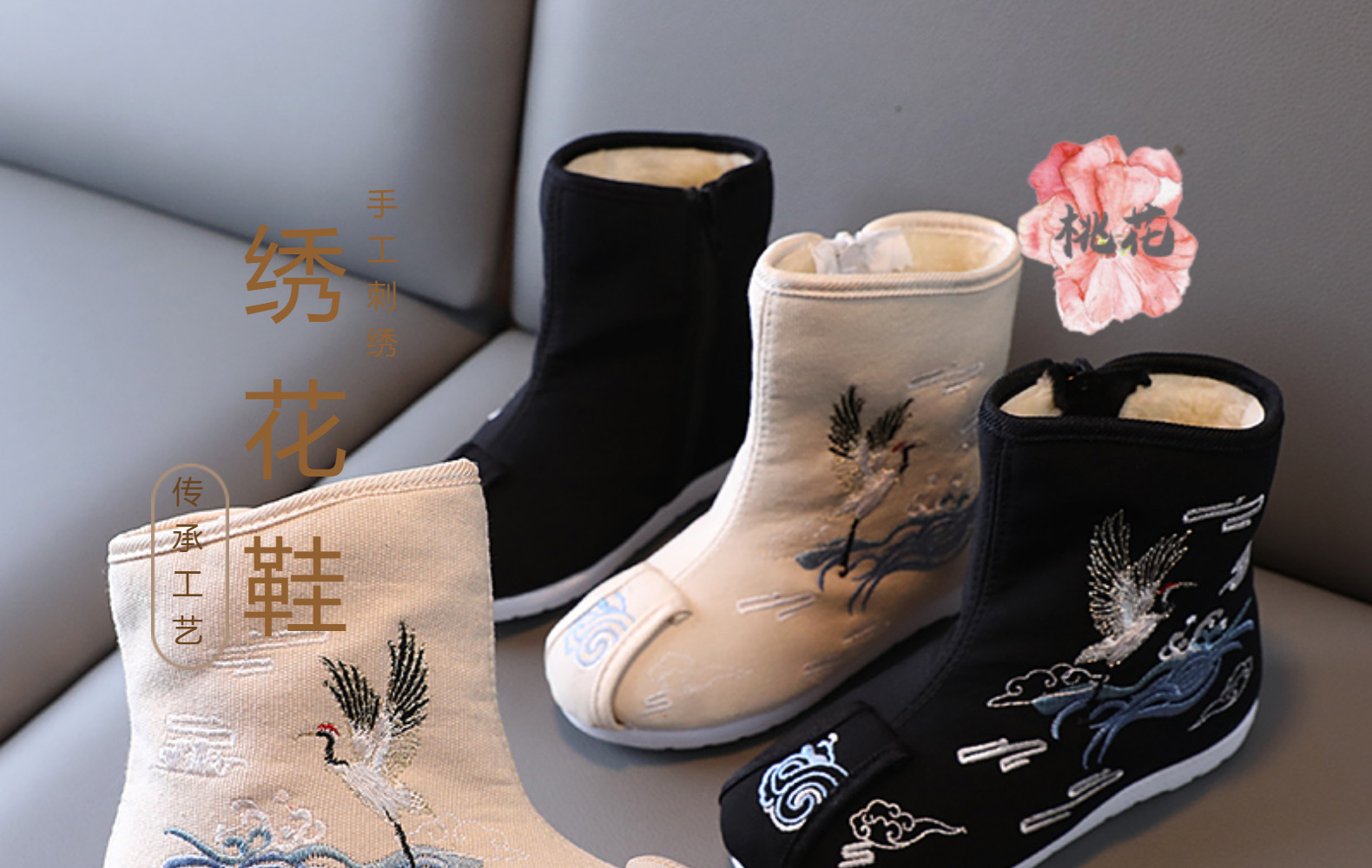 秋冬の新型の古い北京の刺繍の単靴の中国風の漢服の靴と綿の厚い刺繍の赤ちゃんの靴の雪地の靴