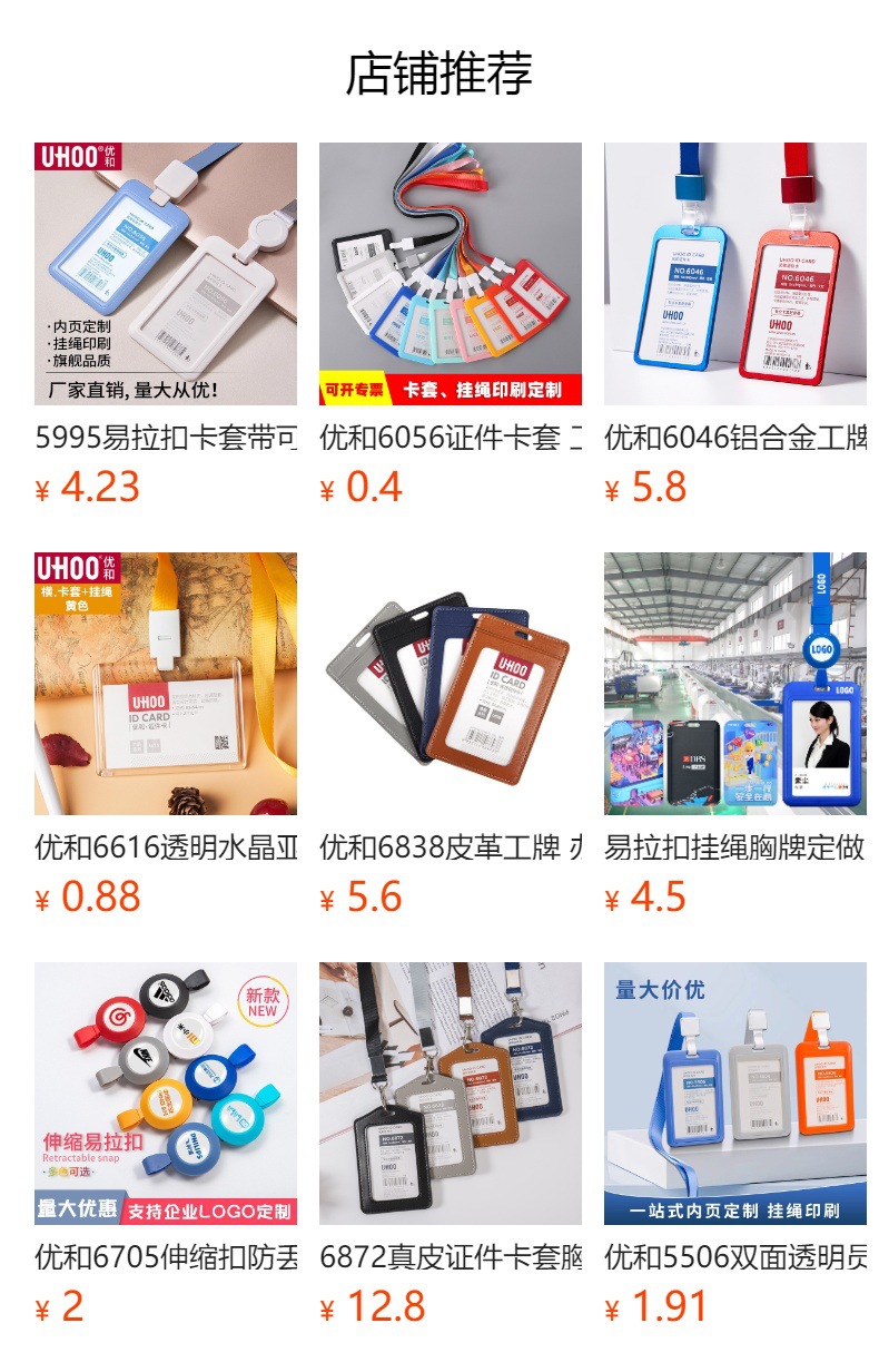 优和6056工作牌证件卡套 工作证学生门禁胸牌挂绳工牌卡套定制