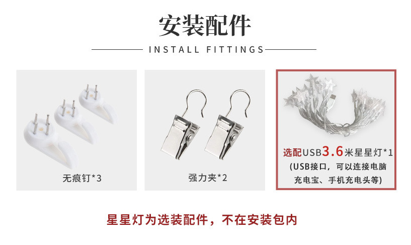 サイズ 幅75cm ~ 高さ100cm (インストールパッケージ),幅100cm-高さ150cm (インストールパッケージ),幅150cm-高さ200cm (インストールパッケージ),幅75cm-高さ100cm,幅100cm-高さ150cm (インストールバッグ + 4メートルスターライト),幅150cm-高さ200cm (インストールバッグ + 4メートルスターライト),寸法パターンをカスタマイズしてお客様に連絡する