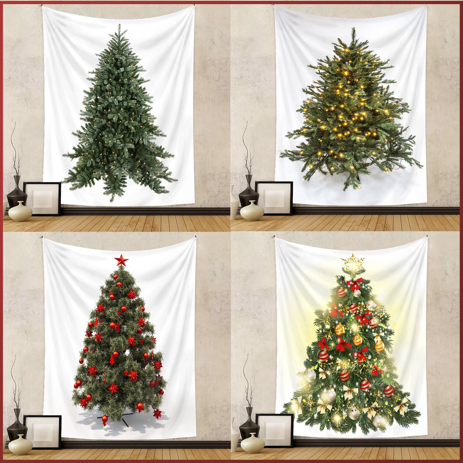 アマゾン クリスマスツリー パインツリー タペストリー 部屋飾り 外貿 ホリデー背景布 シンプルな吊り下げ布 多様なシーンに適用