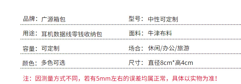 汎用円形イヤホン収納バッグ携帯大容量デジタル金物箱データラインファスナー防圧スポット